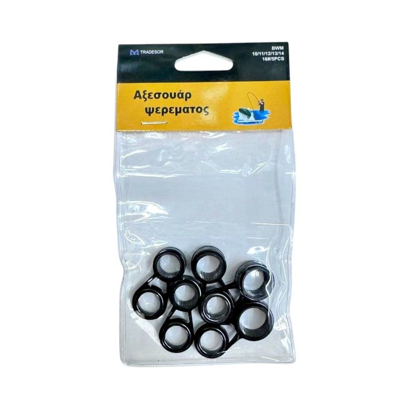 Δυνατές, ανθεκτικές θηλιές, ιδανικές για νήμα. Βοηθούν στην ομαλή μετάδοση της κίνησης της πετονιάς από το μηχανάκι μέσα από τους οδηγούς του καλαμιού και ελέγχουν αποτελεσματικά την πετονιά από τον πρώτο οδηγό, απαλείφοντας τις βιρίνες της. Βελτιώνεται σημαντικά η συμπεριφορά του καλαμιού, αυξάνεται η ισορροπία του και επιτυγχάνονται ακριβέστερες και μακρύτερες βολές. Είναι ελαφριές για να μειώνεται το συνολικό βάρος και χάρη στον εργονομικό σχεδιασμό, ελαχιστοποιείται ο κίνδυνος μπερδέματος. Το σετ περιλαμβάνει 5 οδηγούς διαφορετικού μεγέθους. Αυθεντικό προϊόν Tradesor.