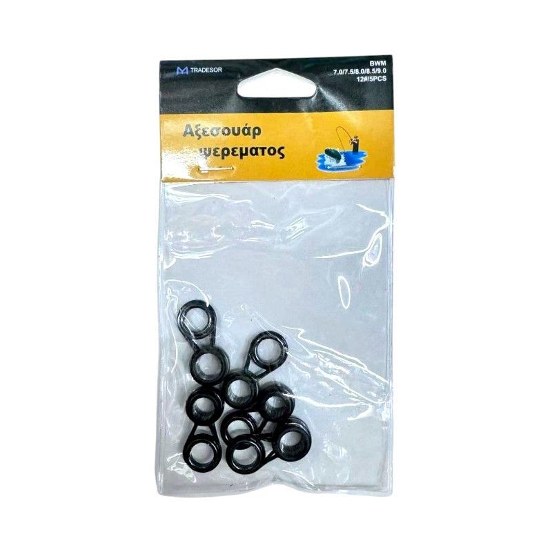 Δυνατές, ανθεκτικές θηλιές, ιδανικές για νήμα. Βοηθούν στην ομαλή μετάδοση της κίνησης της πετονιάς από το μηχανάκι μέσα από τους οδηγούς του καλαμιού και ελέγχουν αποτελεσματικά την πετονιά από τον πρώτο οδηγό, απαλείφοντας τις βιρίνες της. Βελτιώνεται σημαντικά η συμπεριφορά του καλαμιού, αυξάνεται η ισορροπία του και επιτυγχάνονται ακριβέστερες και μακρύτερες βολές. Είναι ελαφριές για να μειώνεται το συνολικό βάρος και χάρη στον εργονομικό σχεδιασμό, ελαχιστοποιείται ο κίνδυνος μπερδέματος. Το σετ περιλαμβάνει 5 οδηγούς διαφορετικού μεγέθους. Αυθεντικό προϊόν Tradesor.