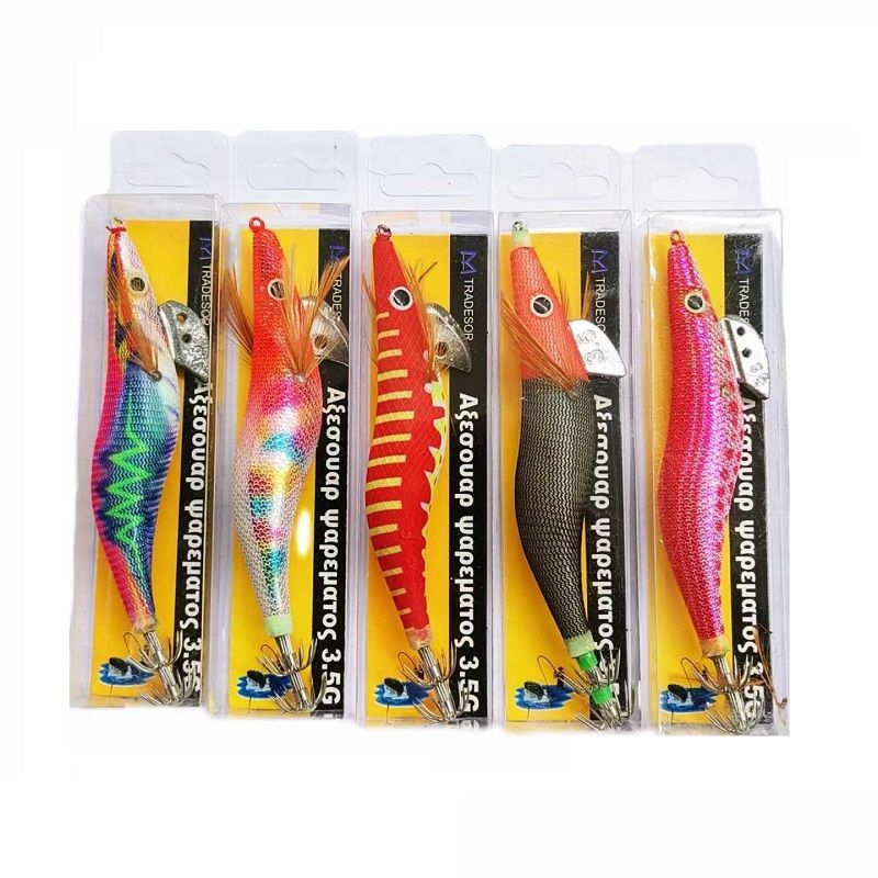 Τεχνητά δολώματα ειδικά σχεδιασμένα για το ψάρεμα καλαμαριού, με ρεαλιστική εμφάνιση, έντονα, ελκυστικά χρώματα και φυσική κίνηση στο νερό για μέγιστη αποτελεσματικότητα.