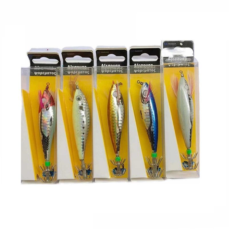Τεχνητά δολώματα ειδικά σχεδιασμένα για το ψάρεμα καλαμαριού, με ρεαλιστική εμφάνιση, έντονα, ελκυστικά χρώματα και φυσική κίνηση στο νερό για μέγιστη αποτελεσματικότητα.