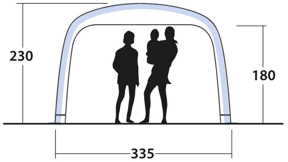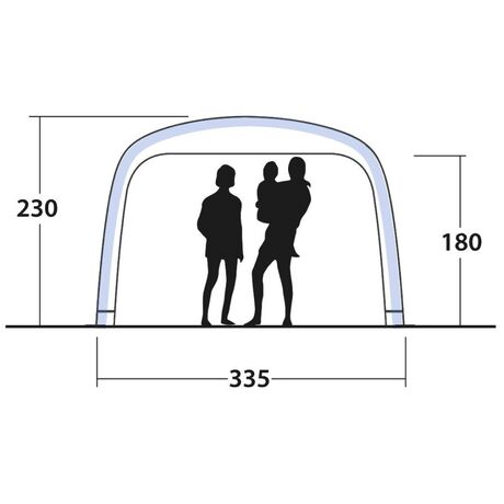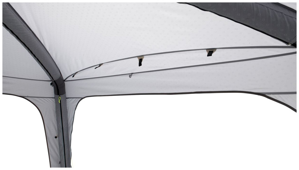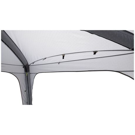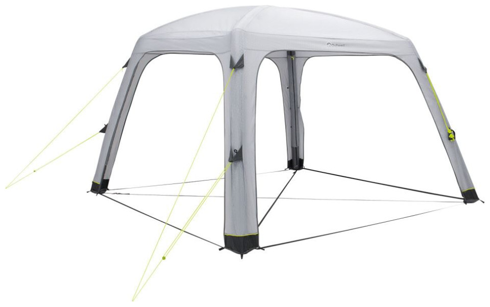 Το κιόσκι Air Shelter της Outwell με ίσες πλευρές 3,35 m και μέγιστο ύψος 2,30 m διαθέτει εξωτερικό ύφασμα από 100% πολυεστέρα με σφραγιζόμενες ραφές. Είναι ιδανικό για το κάμπινγκ, τα πάρτι και διάφορες εκδηλώσεις κήπου, καθώς το γρήγορο, αυτό, φουσκωτό κιόσκι προσφέρει στυλ και προστασία από τις καιρικές συνθήκες σε κάθε περίσταση. Το μέγιστο ύψος και οι ανοιχτές πλευρές παρέχουν άφθονο χώρο για μαγείρεμα, φαγητό, παιχνίδια, χαλάρωση και πολλές άλλες δραστηριότητες με την οικογένεια και τους φίλους σας. Διαθέτει αδιαβροχοποίηση 3.000 χιλιοστών και μεμονωμένους σωλήνες που διογκώνονται, με την βοήθεια της αντλίας αέρα που περιλαμβάνεται στη συσκευασία, μέσω μίας ενιαίας βαλβίδας εύκολης πρόσβασης. Για επιπλέον ευελιξία, μπορείτε να προσθέσετε τα προαιρετικά πλευρικά τοιχώματα και το δάπεδο, τα οποία πωλούνται ξεχωριστά και να αποθηκεύσετε το κιόσκι στην τσάντα μικρού μεγέθους, που διαθέτει ιμάντες, η οποία κάνει τη μεταφορά πιο εύκολη.