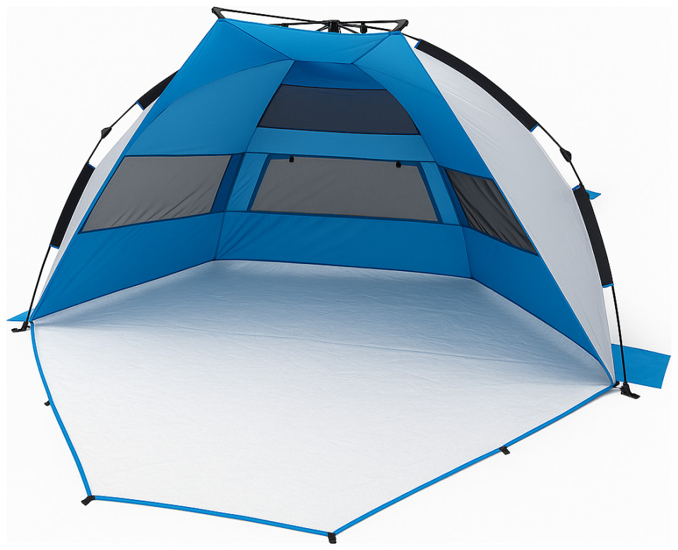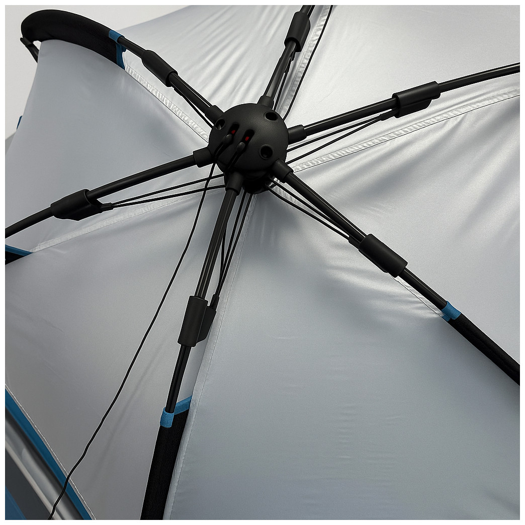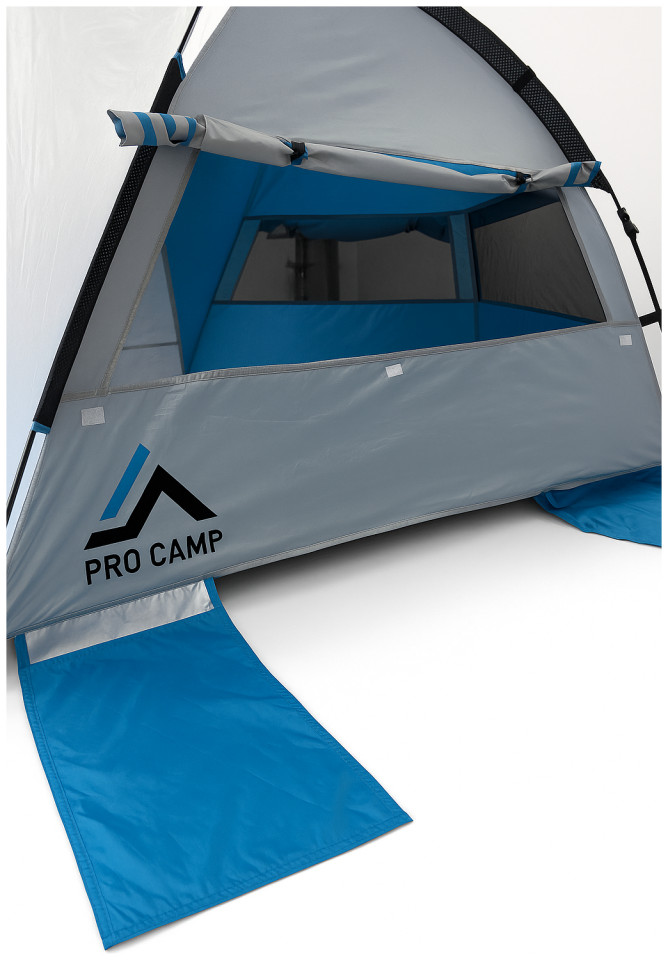Η σκηνή διαθέτει 2 μεγάλα πλευρικά ανοίγματα εξαερισμού με κουνουπιέρα, εξασφαλίζοντας άνεση και προστασία από τα έντομα. Το πάτωμα PE στην μπροστινή πλευρά ανασηκώνεται και κλείνει, προσφέροντας επιπλέον προστασία. Οι μπανέλες από fiberglass 8.5mm προσφέρουν σταθερότητα, ενώ περιλαμβάνονται 4 σακουλάκια άμμου 30x30cm, πασαλάκια και σχοινιά για ασφαλή τοποθέτηση.