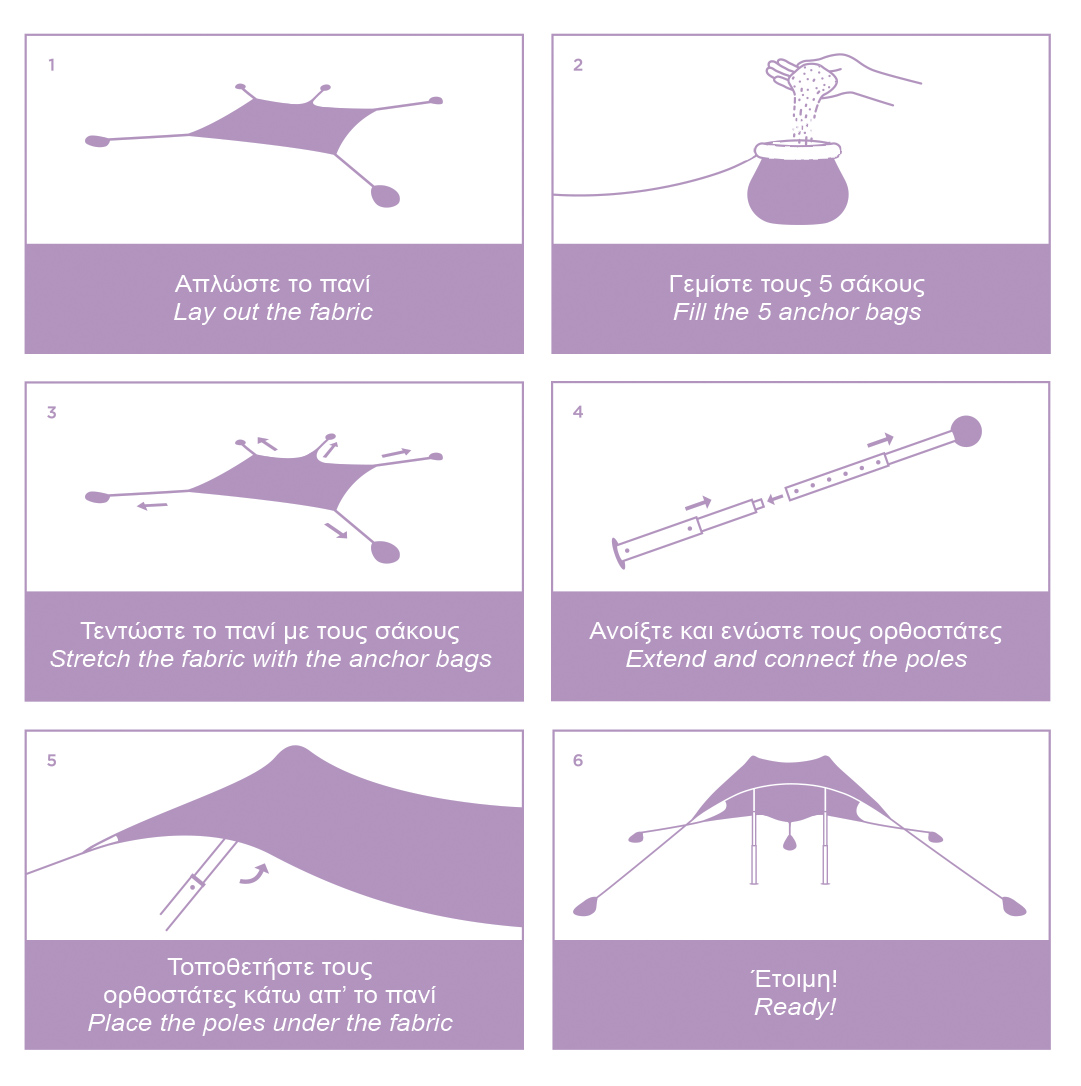 • Περιλαμβάνονται 4 σάκοι που γεμίζουν με άμμο ή βότσαλα για την σταθεροποίηση της τέντας