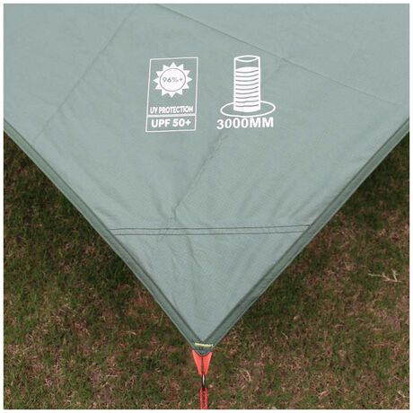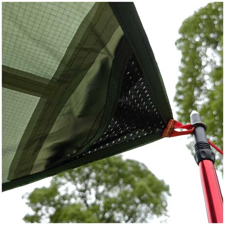 Τέντα από την AplinTec με ειδικό σχεδιασμό κατάλληλη για τις περισσότερες αιώρες του εμπορίου! Ένα απαραίτητο προϊόν για το camping ή το πικνίκ σας, θα σας προστατεύσει από τα στοιχεία της φύσης σε κάθε σεζόν. Ο ειδικός σχεδιασμός της και τα έξι σημεία στήριξης της σας προσφέρουν ένα μεγάλο και αποτελεσματικό καταφύγιο από τον ήλιο ή ακόμη και τη βροχή. Απολαύστε το πικνίκ σας ή την χαλάρωσή σας στην αιώρα αδιαφορώντας για τις καιρικές συνθήκες καθώς συνδυάζει αδιαβροχοποίηση 3.000 mm και προστασία από την ακτινοβολία του ήλιου UPF50+. Σε κάθε γωνία της διαθέτει θηλιά και η στερέωσή της μπορεί να γίνει εύκολα από κάποιο δέντρο ή ορθοστάτη στα 2 σημεία και με τα υπόλοιπα 4 σημεία να την αγκυρώσετε στο έδαφος. Απολαύστε την φύση ανέμελα και προστατευμένοι!