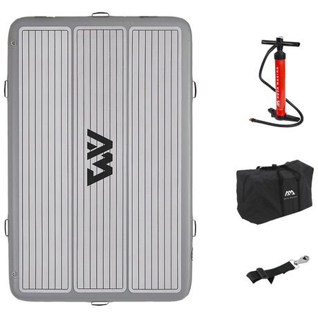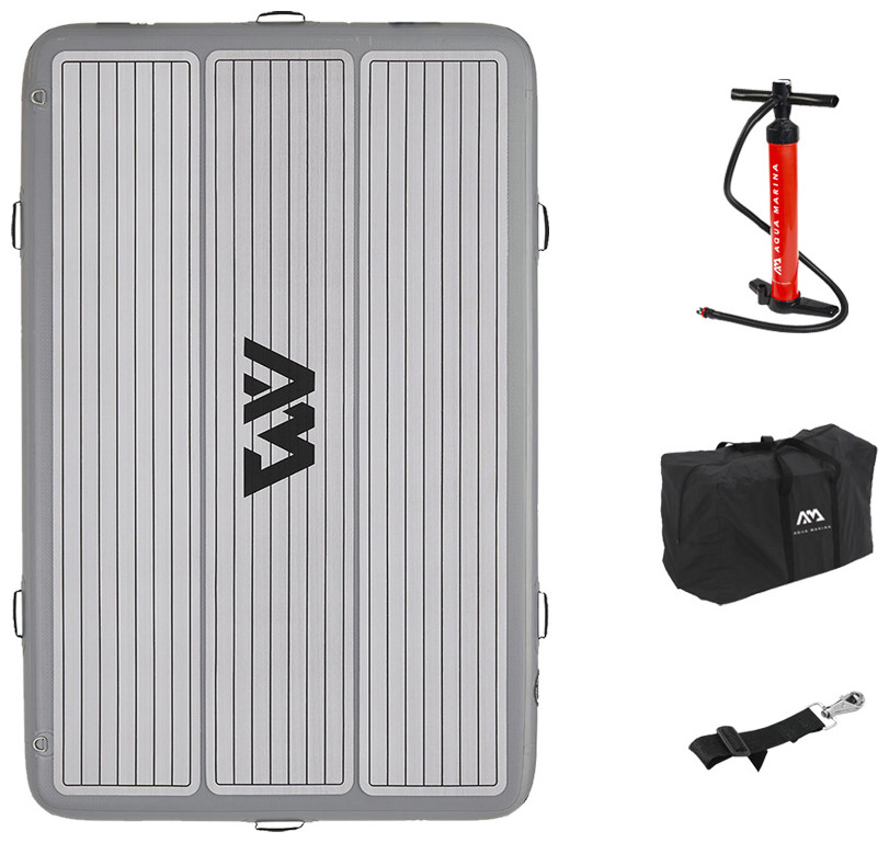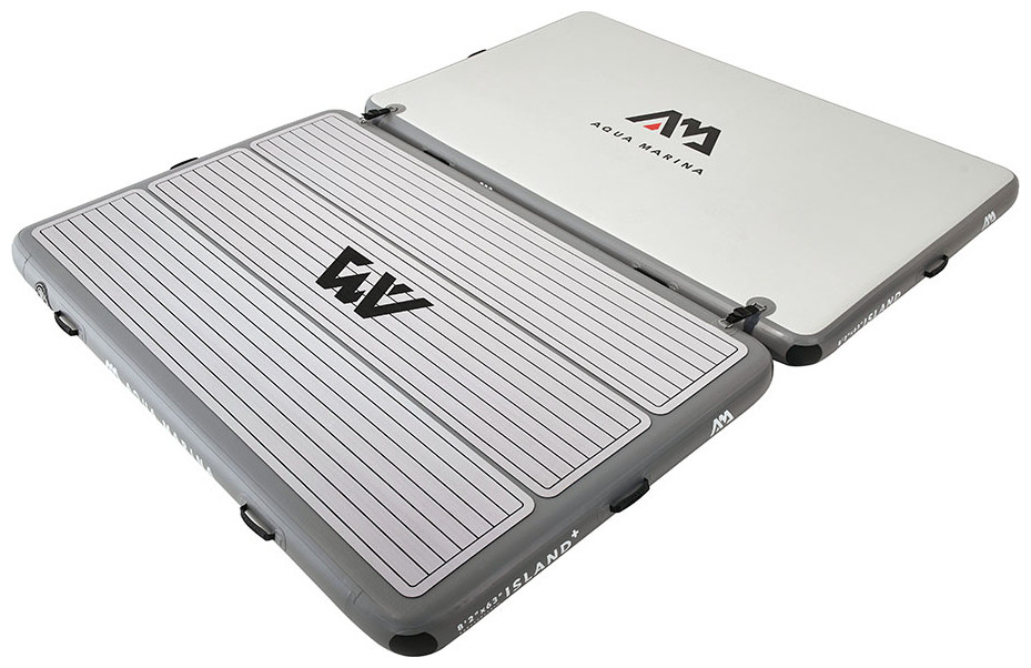 Φουσκωτή Πλατφόρμα Aqua Marina με μεγάλη χωρητικότητα 3+1 ατόμων για να απολαμβάνεται μακρινές βόλτες με την παρέα σας. Κατασκευασμένη από υλικά υψηλής ποιότητας για μέγιστη αντοχή στον χρόνο και στην συχνή χρήση. Με διπλό τοίχωμα 15cm ,με τεχνολογία drop stitch για μέγιστη ακαμψία και αντοχή και ενισχυμένο πλευρικό τοίχωμα. Με αναστολείς UV για μεγαλύτερης διάρκειας προστασία από την υπεριώδη ακτινοβολία. Εφοδιασμένη με ανοξείδωτους κρίκους και ιμάντα για εύκολη σύνδεση με άλλες πλατφόρμες. Το ISLAND+ διαθέτει επίστρωση αντιολισθητικού υλικού EVA με υφή ξύλου, σε όλη την επιφάνεια, για απόλυτη σταθερότητα και άνεση.