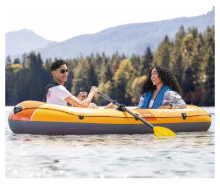 Η φουσκωτή βάρκα 2 ατόμων Challenger (Κωδ. 66312) είναι η ιδανική επιλογή για τους λάτρεις της θάλασσας και των υδάτινων σπορ. Κατασκευασμένη από ανθεκτικό βινύλιο SUPER-TOUGH, προσφέρει εξαιρετική αντοχή και σταθερότητα. Με μήκος 236 cm και χωρητικότητα 2 ατόμων, είναι ιδανική για οικογενειακές εκδρομές ή βόλτες με φίλους. Η βάρκα περιλαμβάνει τρόμπα χειρός και ζεύγος κουπιών, διευκολύνοντας τη χρήση της. Οι βαλβίδες Boston επιτρέπουν γρήγορο φούσκωμα και ξεφούσκωμα, ενώ το φουσκωτό l-beam πάτωμα προσφέρει άνεση και ακαμψία. Οι υποδοχές κουπιών στα πλαϊνά τοιχώματα και οι βάσεις κουπιών διευκολύνουν τη χρήση τους. Με τρεις θαλάμους αέρος, συμπεριλαμβανομένης και μιας εσωτερικής βοηθητικής, η ασφάλεια και η σταθερότητα είναι εγγυημένες. Ιδανική για ήρεμες θάλασσες και λίμνες, αυτή η βάρκα είναι το τέλειο εργαλείο για τις καλοκαιρινές σας περιπέτειες.