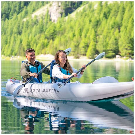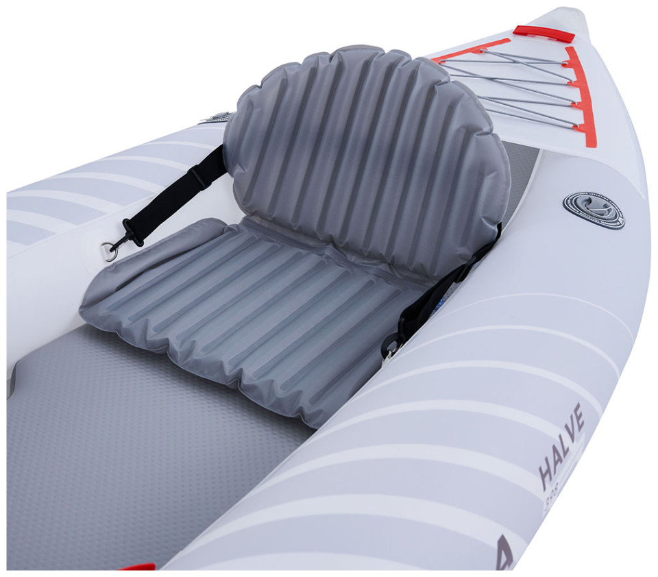 Ανακαλύψτε το Φουσκωτό Καγιάκ 2 Ατόμων HALVE 2 της Aqua Marina, ιδανικό για περιπέτειες στη θάλασσα ή σε λίμνες. Με μήκος 398 cm και πλάτος 98 cm, αυτό το καγιάκ προσφέρει εξαιρετική σταθερότητα και ασφάλεια χάρη στους δύο πλευρικούς αεροθάλαμους. Το μέγιστο φορτίο του φτάνει τα 140 kg, ενώ η χωρητικότητα του επιτρέπει τη μεταφορά έως και 2 ατόμων με συνολικό βάρος 180 kg. Το φουσκωτό δάπεδο I-beam προσφέρει αντοχή και ακαμψία, ενώ το άνετο κάθισμα από PVC εξασφαλίζει άνεση κατά τη διάρκεια της κωπηλασίας. Το καγιάκ ζυγίζει μόλις 7,4 kg, καθιστώντας το εύκολο στη μεταφορά. Στη συσκευασία περιλαμβάνονται τσάντα μεταφοράς, αντλία αέρος ποδιού, 2 καθίσματα PVC και 2 πτερύγια, προσφέροντας όλα όσα χρειάζεστε για μια αξέχαστη εμπειρία στο νερό.