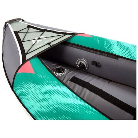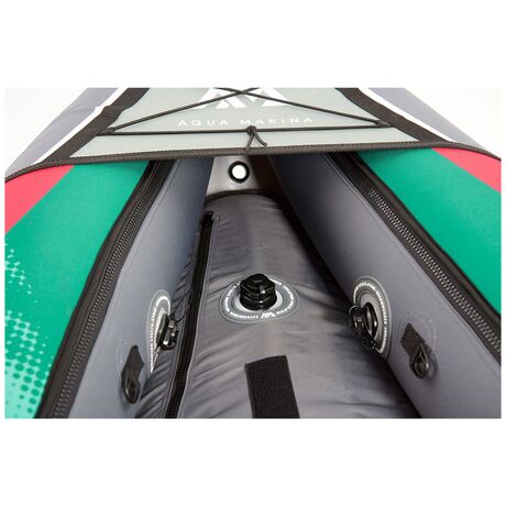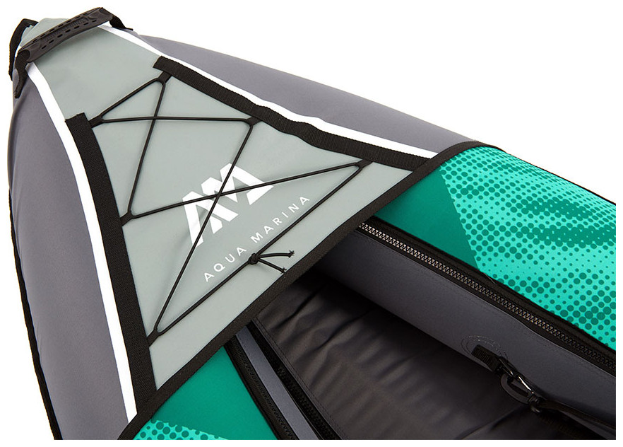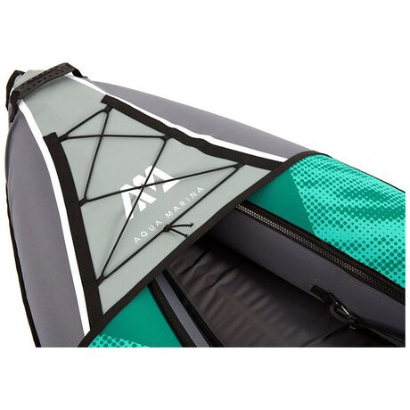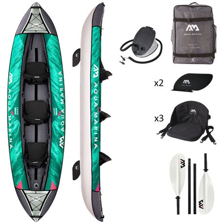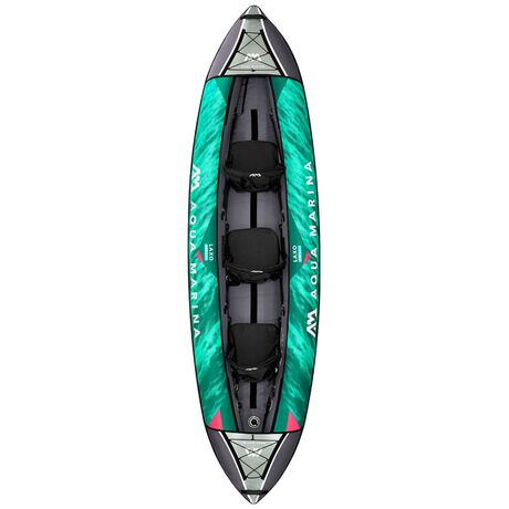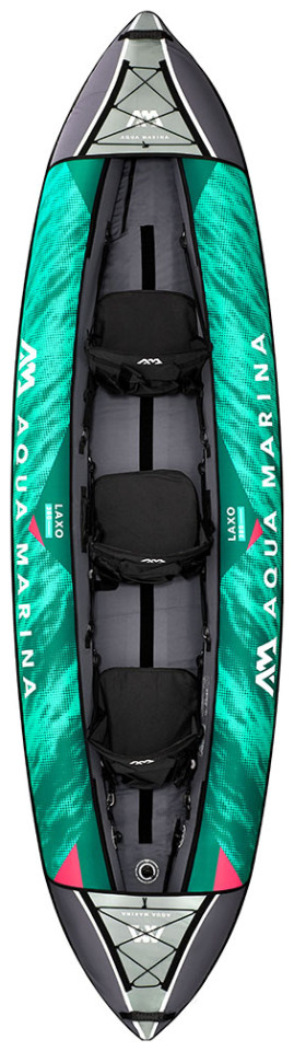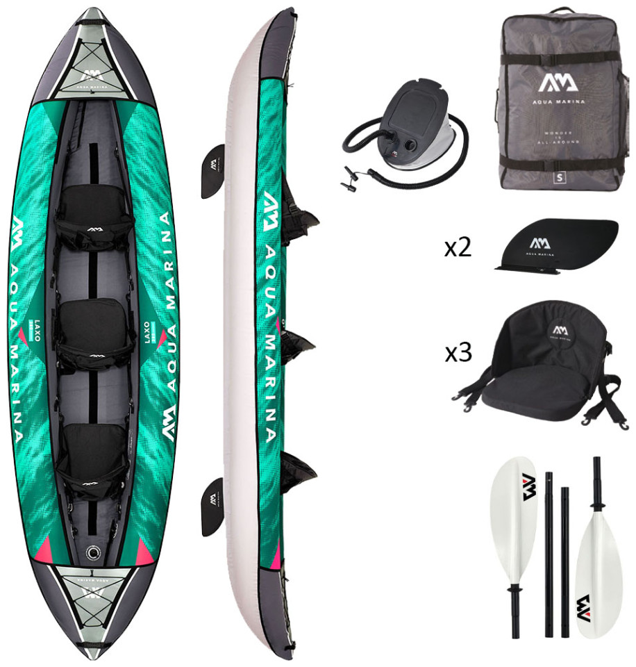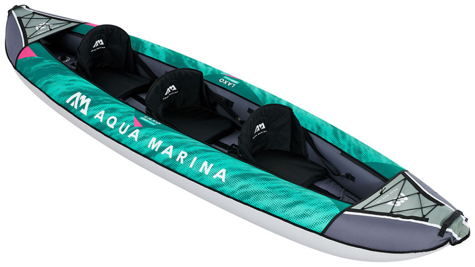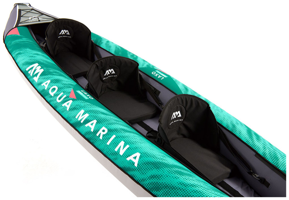 Φουσκωτό Καγιάκ 3 Ατόμων Laxo 10'6'' της Aqua Marina κατασκευασμένο από ύφασμα βαρέως τύπου με ειδική αντι-UV και υδρόφοβη επεξεργασία για μεγάλη ανθεκτικότητα. Τα εντυπωσιακά νέα γραφικά δημιουργήθηκαν για να έχουν μεγάλη διάρκεια μέσω προηγμένης τεχνικής ψηφιακής εκτύπωσης. Με επιπλέον σκληρότερο κάλυμμά στο πάτωμα και στα μπαλόνια για μεγαλύτερη αντοχή και ακαμψία. Ιδανικό τόσο για αρχάριους όσο και για έμπειρους κωπηλάτες, για χρήση σε ήρεμα νερά. Φουσκωτή καρίνα V για μεγαλύτερη σταθερότητα. Ελαστικά κορδόνια μπροστά και πίσω για αποθήκευση αντικειμένων. Η πλώρη είναι σχεδιασμένη ώστε να απομακρύνει τα νερά κατά την πλεύση και έχει χειρολαβή μεταφοράς από καουτσούκ. Στην συσκευασία περιλαμβάνονται 3 καθίσματα με ψηλή πλάτη για άνεση καθόλη την διάρκεια χρήσης, καθώς επίσης και σάκος μεταφοράς για την ασφαλή και άνετη μεταφορά και αποθήκευση του καγιάκ. Απολαύστε με άνεση και ασφάλεια το αγαπημένο σας χόμπι χάρη στην ποιότητα και αξιοπιστία της εταιρείας Aqua Marina.