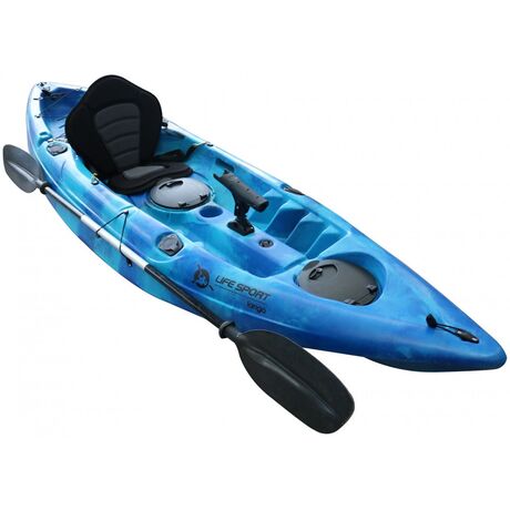 Καγιάκ 1 ατόμου Lango ιδανικό για τους λάτρεις της κωπηλασίας, του ψαρέματος αλλά και για όσους θέλουν να απολαμβάνουν τις ομορφιές της φύσης ξέγνοιαστα! Είναι κατασκευασμένο από ειδικό πλαστικό LLDPE και διαθέτει φίλτρα απορρόφησης της υπεριώδους ακτινοβολίας για μεγαλύτερη αντοχή στο χρόνο και τις περιβαλλοντικές συνθήκες. Διαθέτει 2 στεγανές καταπακτές για να αποθηκεύετε με ασφάλεια τα προσωπικά σας αντικείμενα χωρίς να διατρέχουν κίνδυνο για να βραχούν, 4 σταθερές καλαμοθήκες, D-rings για εύκολη εφαρμογή καθίσματος και ποτηροθήκη για να απολαμβάνετε το αγαπημένο σας ρόφημα κατά την αναμονή σας στο Καγιάκ. Επίσης διαθέτει μια τρύπα με ένα κάλυμμα στο κάτω μέρος, πρόκειται για υποδοχή για ανιχνευτή ψαριών(δεν περιλαμβάνεται στην συσκευασίας). Η κωπηλασία σε ένα Kayak είναι ταυτόχρονα εξαιρετική άσκηση και διασκέδαση. Μην ξεχνάτε όμως να τηρείτε ορισμένα σημαντικά μέτρα για την ασφάλεια σας. Συγκεκριμένα, να παίρνετε πάντα μαζί σας ένα σωσίβιο, να φροντίζετε να μένετε ενυδατωμένοι και να βάζετε το αντιηλιακό σας ακόμη και σε μέρες που έχει συννεφιά. Απολαύστε το αγαπημένο σας άθλημα και τις ομορφιές της φύσης με την ποιότητα και αξιοπιστία της εταιρείας LifeSport!