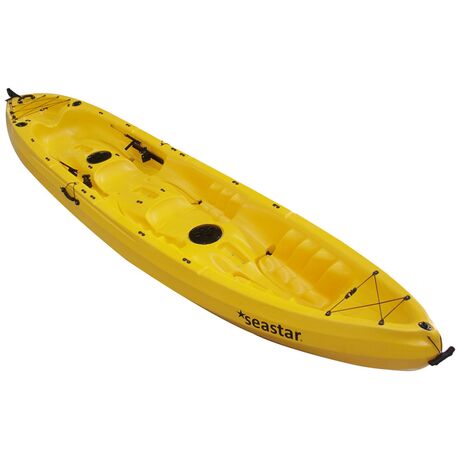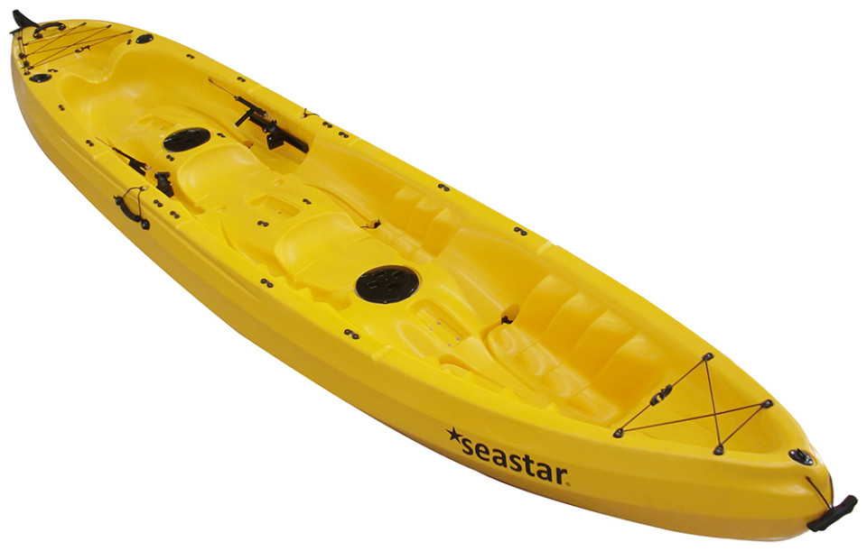 Το καγιάκ Nereus της Seastar πρόκειται για ένα προϊόν με ποιότητα κατασκευής και υλικών! Γρήγορο και με πολύ καλό υδροδυναμικό σχήμα για να κρατάει την κατεύθυνση που θέλετε εύκολα χωρίς να επηρεάζεται από τα κύματα. Ο σχεδιασμός του έχει μεγάλο βύθισμα κατά μήκος της γάστρας για να του δίνει καλή και γρήγορη πλεύση ενώ το καλούπι της γάστρας και το πως επιπλέει στο νερό το κάνουν ιδιαίτερα σταθερό και δύσκολο στο να αναποδογυρίσει. Διαθέτει άνετο χώρο συγκράτησης και αποθήκευσης με αρκετό βάθος και λάστιχο στο πίσω μέρος για να μεταφέρετε μεγαλύτερα αντικείμενα, επιπλέον είναι εξοπλισμένο με δύο στεγανά ντουλαπάκια, μπροστά από τις δύο θέσεις, για να μεταφέρετε με ασφάλεια τα μικροαντικείμενά σας. Ιδανικό για ψάρεμα με τις 2 σταθερές καλαμοθήκες οι οποίες έχουν καπάκια αλλά και 3 υποδοχές για τοποθέτηση περιστρεφόμενης καλαμοθήκης. Επίσης μπροστά από τις δύο θέσεις αυτές διαθέτει ποτηροθήκη για να έχετε το ρόφημα σας ασφαλή και συγκρατητή κουπιού για να έχετε πλήρη ελευθερία κινήσεων. Μπορεί να μεταφέρει με άνεση εως 307Kg που σημαίνει οτι μπορούν να επιβιβαστούν μέχρι 3 άτομα, είτε 2 ενήλικες και 1 παιδί είτε 3 ενήλικες με ανάλογο βάρος ενώ το σχετικά μικρό του μήκος το κάνει εύκολο στο χειρισμό ακόμη και από 1 άτομο αν χρησιμοποιήσει την μεσαία θέση. Ένα πραγματικά ιδανικό καγιάκ για ψάρεμα!
