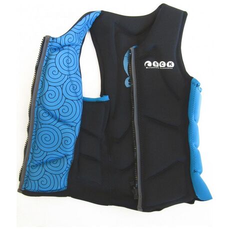 Το σωσίβιο γιλέκο διπλής όψης της SCK είναι ραμμένο σε πολλά τμήματα για να σας προσφέρει μέγιστη άνεση κινήσεων και προστασία από τους κραδασμούς. Το σωσίβιο αυτό εφαρμόζει άψογα και είναι ιδανικό για να απολαμβάνετε με ασφάλεια όλα τα θαλάσσια σπόρ!