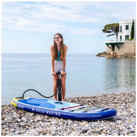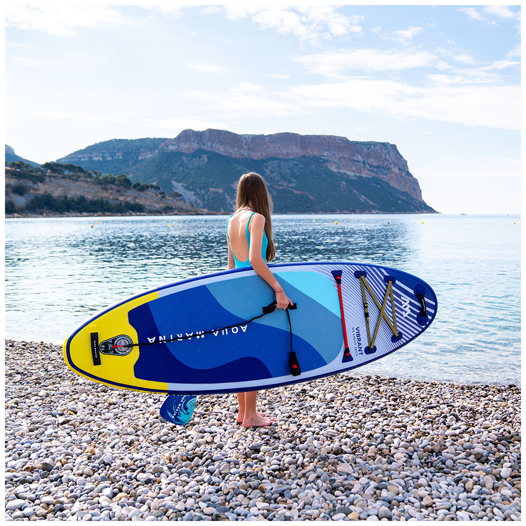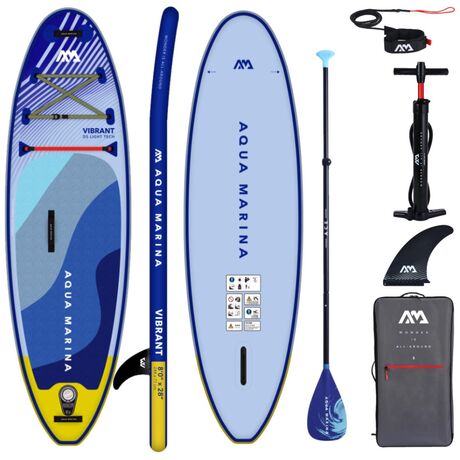 Φουσκωτή Σανίδα Sup Vibrant Aqua Marina με ένα all-around ευέλικτο σχήμα που το καθιστά ιδανικό για χρήση από παιδιά. Ανεξάρτητα από το αν θέλουν να διασκεδάσουν σε ήρεμα νερά ή να πιάσουν μερικά μικρά κύματα, αυτή η σανίδα είναι η τέλεια επιλογή. Με τεχνολογία drop stitch light, το VIBRANT 8'0" είναι εξαιρετικά άκαμπτο και ανθεκτικό. Το αναβαθμισμένο footpad EVA με ανάγλυφο σε σχεδιασμό κυματισμού άμμου έχει κάνει αυτή τη σανίδα μαλακή και απαλή για οποιαδήποτε στάση κωπηλασίας. Η ουρά του είναι τετραγωνισμένη ώστε να προσφέρει μεγαλύτερη σταθερότητα Κατασκευασμένο σύμφωνα με τα ίδια αυστηρά πρότυπα και υιοθετεί την ίδια καινοτόμο τεχνολογία με τις μεγαλύτερες σανίδες ,αλλά καθώς είναι μικρότερο, στενότερο και έχει μικρότερο όγκο, είναι πολύ πιο εύκολο για τους νέους αναβάτες να ελιχθούν, τόσο μέσα όσο και έξω από το νερό.