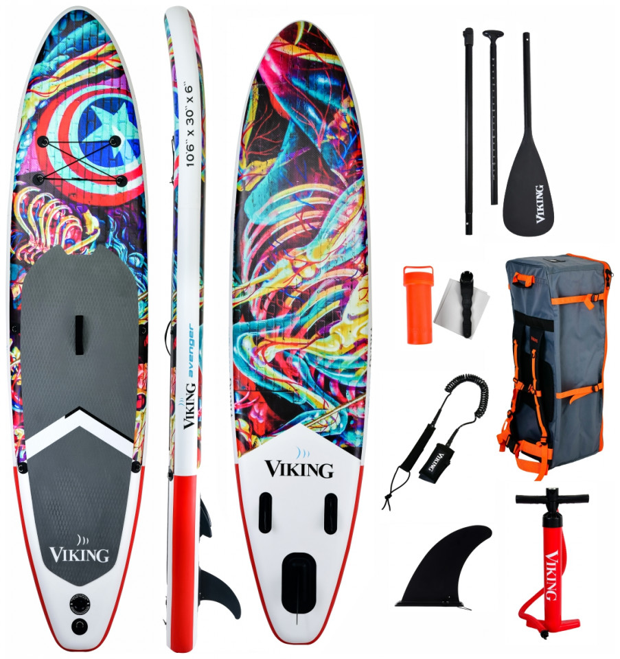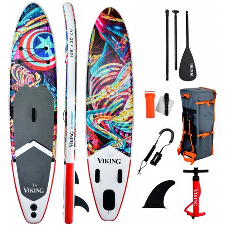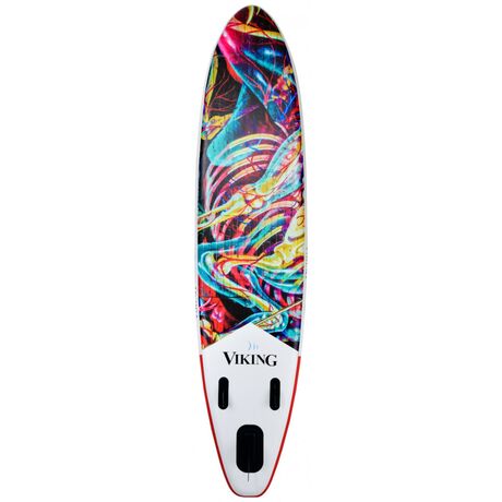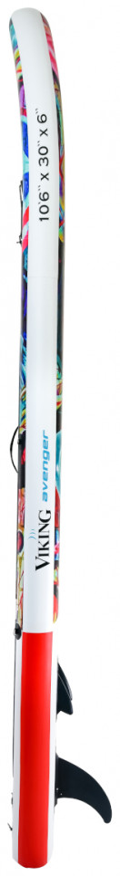 Φουσκωτή Σανίδα Sup All Around SL 10'6'' της Viking σχεδιασμένη για τις ελληνικές θάλασσες. Τα Viking Sup κατασκευάζονται με βάση την τεχνολογία Welding Rail που αυξάνει την αντοχή στην εσωτερική πίεση στο μέγιστο των 25 psi. Αυτή η τεχνολογία επιτρέπει τη μηχανική συγκόλληση στρωμάτων PVC (Welding Rail Tech) χωρίς τη χρήση κόλλας και επιτυγχάνει την ένωση δύο επιφανειών σε μία ενιαία και ατόφια δομή, βελτιώνοντας κατακόρυφα την αντοχή του Sup ειδικά στο πλάι της σανίδας ( ρέλια ) όπου συγκλίνουν οι δύο επιφάνειες και όπου εκδηλώνονται οι μεγαλύτερες πιέσεις. Η συγκεκριμένη τεχνολογία που παρουσιάζεται για πρώτη φορά στην Ελλάδα, βελτιώνει εκθετικά τις μηχανικές ιδιότητες του sup και κυρίως την αντοχή τους στις υψηλές θερμοκρασίες. Όλα τα Viking Sup κατασκευάζονται με πάχος 15 εκατοστών που προσδίδει αυξημένη πλευστότητα και σταθερότητα σε συνθήκες ήπιου κυματισμού. Επιπλέον ο πυρήνας τους κατασκευάζεται με υπέρ – ενισχυμένο και πυκνό Drop Stich υλικό που τους δίνει την πολυπόθητη ακαμψία. Ο συνδυασμός των παραπάνω δημιουργεί ένα Sup που προσαρμόζεται με επιτυχία στις ανήσυχες Ελληνικές θάλασσες. Τα Viking Sup διαθέτουν εξελιγμένο υδροδυναμικό σχήμα που τα κάνει γρήγορα και υπάκουα στις εντολές του αναβάτη. Η σχεδίαση της μύτης, τους επιτρέπει να γλιστρούν άνετα και ευθύβολα στο νερό ακόμα και σε ελαφρό κυματισμό. Εφοδιάζονται με 3 πτερύγια για αυξημένη κατευθυντικότητα. Ταυτόχρονα οι γενναιόδωρες διαστάσεις τους συνδυάζονται ισορροπημένα με ένα προοδευτικό Rocker profile, εμπνέοντας ασφάλεια και σταθερότητα. Άνετη αποθήκευση αντικειμένων στην πλώρη του Cruiser με μεγάλα Bungee Cords που αγκιστρώνουν σε 6 ανοξείδωτους κρίκους. Επιπλέον πλαϊνοί κρίκοι για την στήριξη καθίσματος Kayak. Η Συσκευασία περιλαμβάνει όλα τα απαραίτητα αξεσουάρ για να απολαμβάνετε με άνεση το αγαπημένο σας χόμπι.