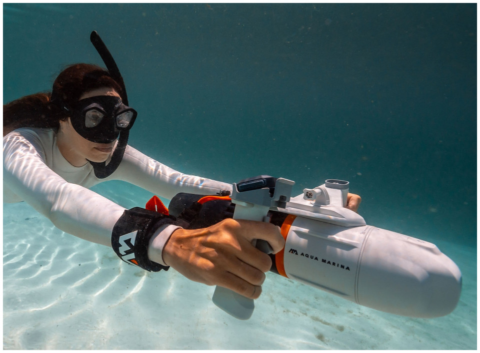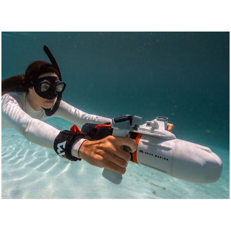 Το Σύστημα Υποβρύχιας Προώθησης Aqua Marina Blue Drive X 28361 είναι η ιδανική λύση για τους λάτρεις των θαλάσσιων σπορ. Με ισχύ 97,68 Wh και τρεις ρυθμίσεις ταχύτητας (3, 5, 7 Km/Hr), προσφέρει ευελιξία και απόδοση σε κάθε περιπέτεια. Το μέγεθος του είναι 43.2x36.7x17 cm με χειρολαβή και 43.2xΦ1.04 cm χωρίς, ενώ το βάρος του κυμαίνεται από 2.4Kg έως 2.8Kg ανάλογα με την παρουσία της χειρολαβής. Η διάρκεια της μπαταρίας φτάνει έως 50 λεπτά, ιδανική για υποβρύχιες εξερευνήσεις σε βάθος έως 10 μέτρα.Ο καινοτόμος κινητήρας του παρέχει μέγιστη πρόωση 6,5kgf, ενώ η ρύθμιση ταχύτητας επιτρέπει εύκολη και ασφαλή μετάβαση από 3km/h σε 7km/h. Η προηγμένη μπαταρία υψηλής πυκνότητας εξασφαλίζει μεγαλύτερη ισχύ και διάρκεια, ενώ το μαγνητικό σύστημα γρήγορης φόρτισης διευκολύνει τη χρήση. Το σύστημα διαθέτει επίσης ασύρματο έλεγχο χειρός με σκανδάλη για ασφαλή εναλλαγή ταχύτητας και τηλεχειριστήριο τύπου ρολογιού για εύκολη πρόσβαση.Η εύκολη αλλαγή από επιφάνεια νερού σε υποβρύχια χρήση, καθώς και η συμπαγής σχεδίαση για αποθήκευση, κάνουν το Aqua Marina Blue Drive X 28361 απαραίτητο αξεσουάρ για κάθε θαλάσσια περιπέτεια. Επιπλέον, περιλαμβάνει βάση για κάμερα POV για να αποθανατίσετε τις καλύτερες στιγμές σας και συμπαγή τσάντα μεταφοράς για εύκολη μεταφορά.