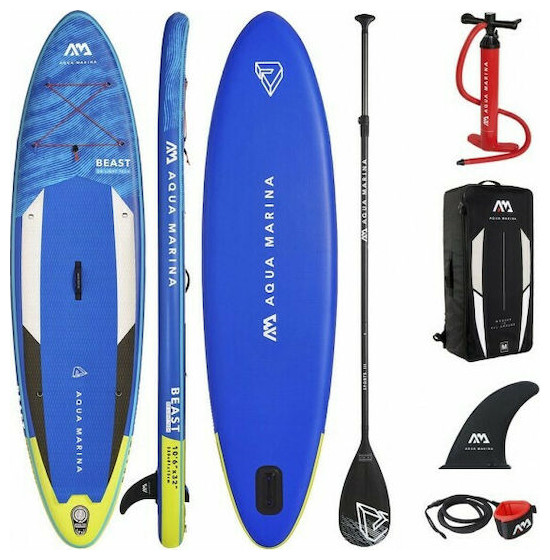 Αποκτήστε την νέα εκπληκτική φουσκωτή σανίδα Beast 10΄6" της AQUAMARINA και μπείτε στον υπέροχο κόσμο του Stand Up Paddle Surfing ή απλά Sup, του πιο ταχέως αναπτυσσόμενου θαλάσσιου σπορ παγκοσμίως, που έχει κατακτήσει και τις ελληνικές παραλίες! Είναι κατασκευασμένη με τεχνολογία drop stitch μικρού βάρους από εξαιρετικά ανθεκτικό υλικό, έχει αποσπώμενο slide-in πτερύγιο και φουσκώνει αποκτώντας μεγάλη ακαμψία! Διαθέτει μεγάλο πλάτος, επένδυση από από ανάγλυφο «crocodile skin» αντιολισθητικό υλικό EVA, καθώς και πλευρική ενίσχυση με ρέλι από υλικό 1000 denier. Επιπλέον, διαθέτει σημείο συγκράτησης αντικειμένων με ελαστικό κορδόνι και μηχανισμό ρύθμισης, συμπαγή χειρολαβή Neoprene με επένδυση ιμάντα για μεγαλύτερη αντοχή και άνεση, κρίκους από ανοξείδωτο ατσάλι για τοποθέτηση καθίσματος (εφόσον το επιθυμείτε), που το μετατρέπει σε sit-on-top kayak, kick pad στην ουρά για επιτόπιες στροφές και ελιγμούς, καθώς και αναβαθμισμένη βαλβίδα αέρος για μεγαλύτερη στεγανότητα. Περιέχει και ρυθμιζόμενο κουπί αλουμινίου 3 μερών, σάκο μεταφοράς για εύκολη μεταφορά και αποθήκευση, αντλία αέρος διπλής ενέργειας, καθώς και το leash! Η καλύτερη επιλογή για παιχνίδι, εξερεύνηση των ακτών, και αποτελεσματική άσκηση ολόκληρου του σώματος!