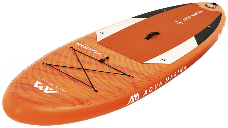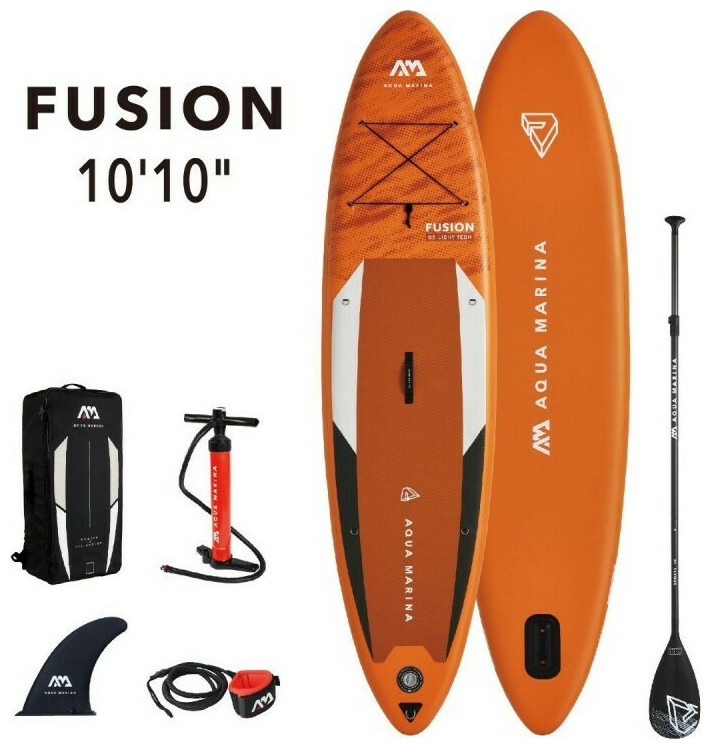 Αποκτήστε την νέα εκπληκτική φουσκωτή σανίδα Fusion 10΄10" της AQUAMARINA και μπείτε στον υπέροχο κόσμο του Stand Up Paddle Surfing ή απλά Sup, του πιο ταχέως αναπτυσσόμενου θαλάσσιου σπορ παγκοσμίως, που έχει κατακτήσει και τις ελληνικές παραλίες! Είναι κατασκευασμένη με τεχνολογία drop stitch μικρού βάρους από εξαιρετικά ανθεκτικό υλικό, έχει αποσπώμενο slide-in πτερύγιο και φουσκώνει αποκτώντας μεγάλη ακαμψία! Διαθέτει μεγάλο πλάτος, επένδυση από ρομβοειδές ανάγλυφο αντιολισθητικό υλικό EVA, για σταθερότητα και άνεση. Επιπλέον, διαθέτει σημείο συγκράτησης αντικειμένων με ελαστικό κορδόνι και μηχανισμό ρύθμισης, συμπαγή χειρολαβή Neopren με επένδυση ιμάντα για μεγαλύτερη αντοχή και άνεση καθώς και κρίκους από ανοξείδωτο ατσάλι για τοποθέτηση καθίσματος, εφόσον το επιθυμείτε, που το μετατρέπει σε sit-on-top kayak. Η αναβαθμισμένη βαλβίδα αέρος που διαθέτει προσδίδει ακόμα μεγαλύτερη στεγανότητα. Περιέχει και ρυθμιζόμενο κουπί αλουμινίου 3 μερών, σάκο μεταφοράς για εύκολη μεταφορά και αποθήκευση, αντλία αέρος διπλής ενέργειας Liquid Air V1, καθώς και το leash! Η καλύτερη επιλογή για παιχνίδι, εξερεύνηση των ακτών, και αποτελεσματική άσκηση ολόκληρου του σώματος!