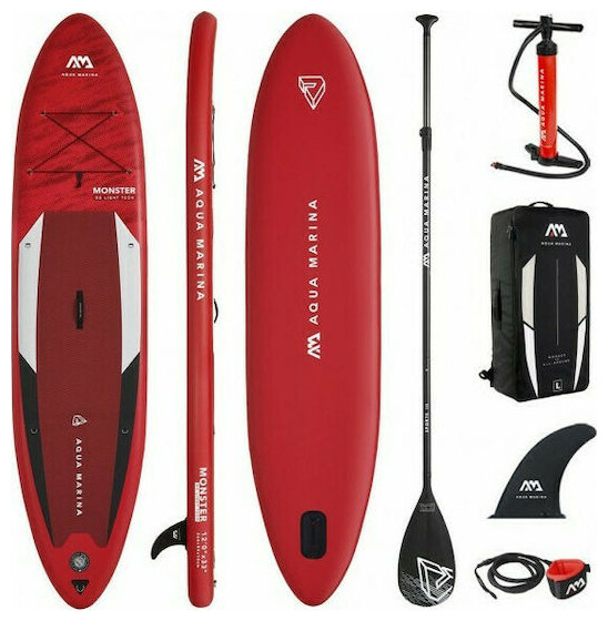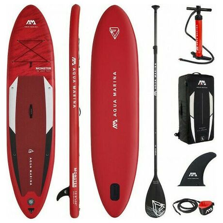 Η SUP MONSTER της AQUAMARINA έχει σχεδιαστεί ειδικά για τους βαρύτερους κωπηλάτες που θέλουν μία γρηγορότερη, σταθερότερη, και πιο ευκίνητη μεγάλη φουσκωτή σανίδα! Κατασκευασμένη από εξαιρετικά ανθεκτικό και άκαμπτο 15 εκ. drop stitch υλικό, με επίπεδο πάτωμα - τα 2/3 του οποίου καλύπτονται από αντιολισθητικό υλικό EVA - και ψηλό πλευρικό τοίχωμα που εξασφαλίζουν σταθερή πλεύση και στεγανότητα, σηκωμένη προς τα πάνω μύτη που βοηθάει στο χειρισμό του κόντρα ανέμου και προσφέρει επιπλέον ταχύτητα και σταθερότητα, και μεγάλο όγκο που επιτρέπει την κωπηλασία με έξτρα αποσκευή ή ένα παιδί (βάρος αντοχής έως 170 κιλά). Ιδανική επιλογή για αγώνες, εξερεύνηση, βόλτα, σπριντ ή τέλεια άσκηση όλου του σώματος!