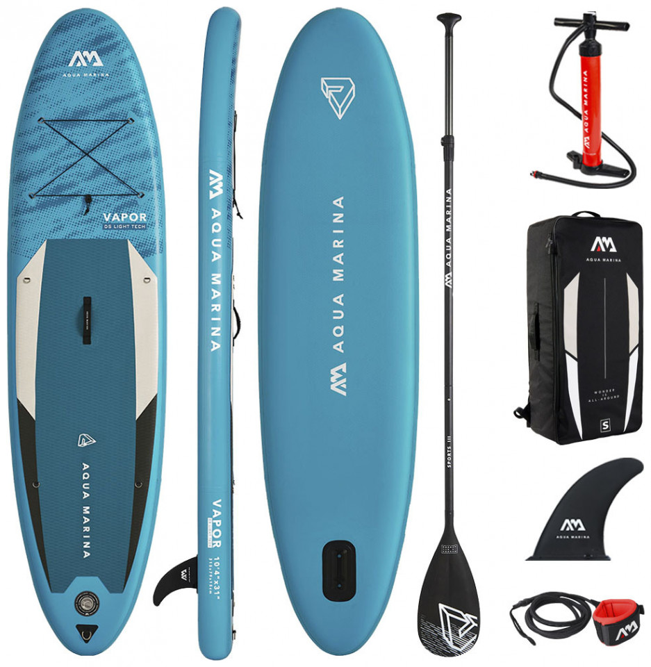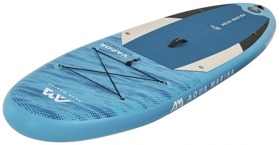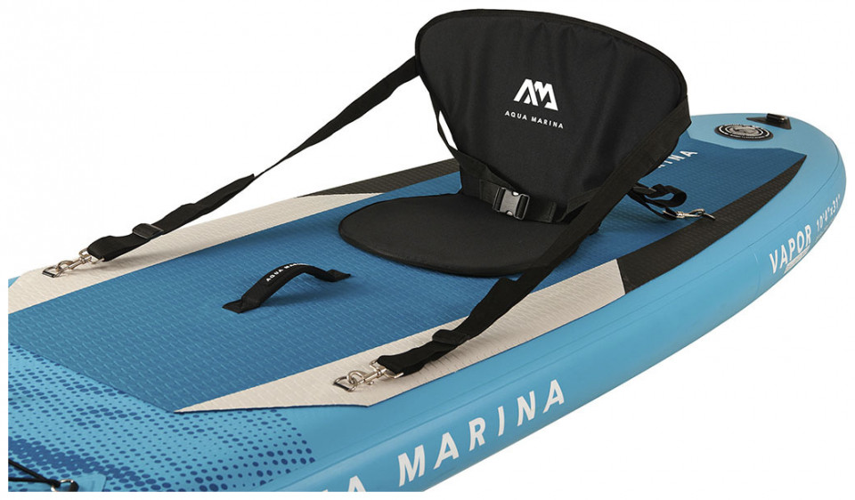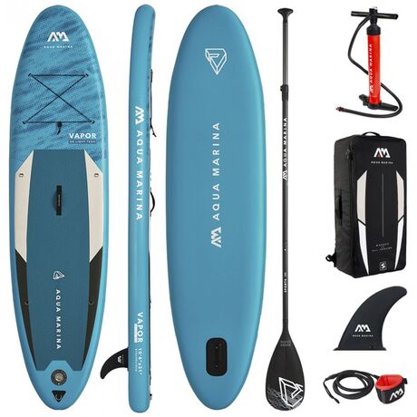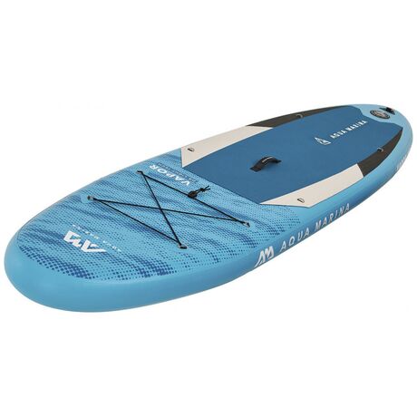 Αποκτήστε την νέα εκπληκτική φουσκωτή σανίδα Vapor 9΄10" 28252 της AQUAMARINA και μπείτε στον υπέροχο κόσμο του Stand Up Paddle Surfing ή απλά Sup, του πιο ταχέως αναπτυσσόμενου θαλάσσιου σπορ παγκοσμίως, που έχει κατακτήσει και τις ελληνικές παραλίες! Είναι κατασκευασμένη με τεχνολογία drop stitch μικρού βάρους από εξαιρετικά ανθεκτικό υλικό, έχει, αποσπώμενο slide-in πτερύγιο και φουσκώνει αποκτώντας μεγάλη ακαμψία! Διαθέτει μεγάλο πλάτος, επένδυση από κυψελωτό αντιολισθητικό υλικό για απόλυτη σταθερότητα και άνεση και αυξημένο για τις διαστάσεις του εσωτερικό όγκο, γεγονός που κάνει την χρήση του πιο εύκολη, σταθερή, με πολύ καλή ποιότητα πλεύσης και χειρισμού, αποτελώντας την πιο έξυπνη επιλογή για όλη την οικογένεια, ακόμα και για τα παιδιά! Δέχεται και κάθισμα που το μετατρέπει, εφόσον το επιθυμείτε, σε sit-on-top kayak! Η καλύτερη επιλογή για παιχνίδι, εξερεύνηση των ακτών, και αποτελεσματική άσκηση ολόκληρου του σώματος!