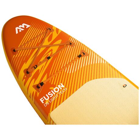 Ανακαλύψτε τη Φουσκωτή Σανίδα SUP 10'10'' Aqua Marina Fusion 330cm, ιδανική για όλους τους λάτρεις των θαλάσσιων σπορ. Με μήκος 3.30 μέτρα και πλάτος 0.81 μέτρα, αυτή η σανίδα προσφέρει εξαιρετική σταθερότητα και ευκολία στη χρήση. Κατασκευασμένη από την Aqua Marina, η Fusion διαθέτει τεχνολογία drop stitch μικρού βάρους (DS light tech) που εξασφαλίζει μεγάλη ακαμψία, ενώ η μέγιστη πίεση αέρα φτάνει τα 15 psi. Το νέο ανάγλυφο αντιολισθητικό υλικό με κυματισμό άμμου προσφέρει επιπλέον κράτημα και άνεση κατά τη διάρκεια της κωπηλασίας. Με μέγιστο βάρος χρήστη 150 kg, είναι κατάλληλη για όλους. Η συσκευασία περιλαμβάνει ρυθμιζόμενο κουπί αλουμινίου 3 μερών, σάκο μεταφοράς CIRCUPACK™ από ανακυκλωμένο πλαστικό, αποσπώμενο slide-in πτερύγιο, leash αστραγάλου και αντλία αέρος διπλής ενέργειας Liquid Air V1. Ιδανική για περιπέτειες στη θάλασσα ή τη λίμνη, η Aqua Marina Fusion είναι η τέλεια επιλογή για τους λάτρεις της φύσης.