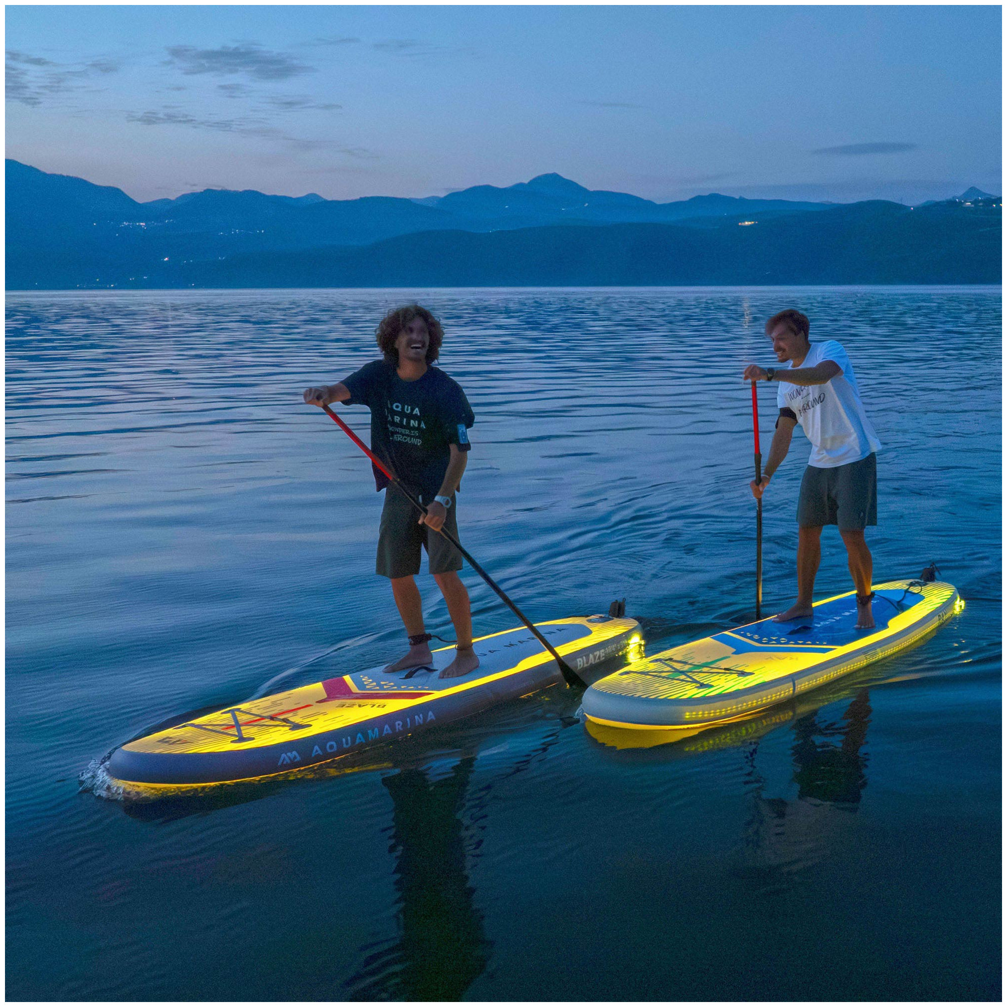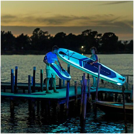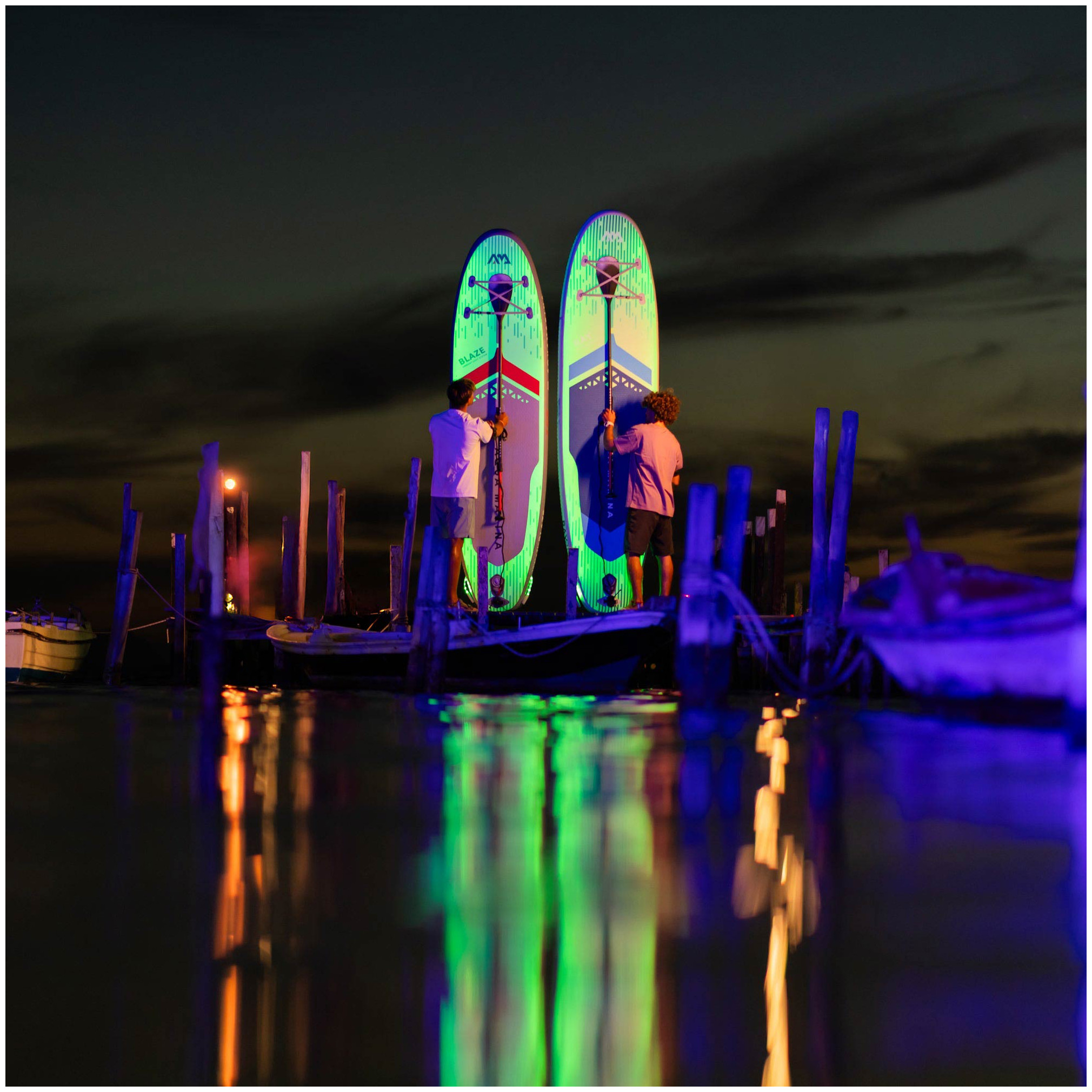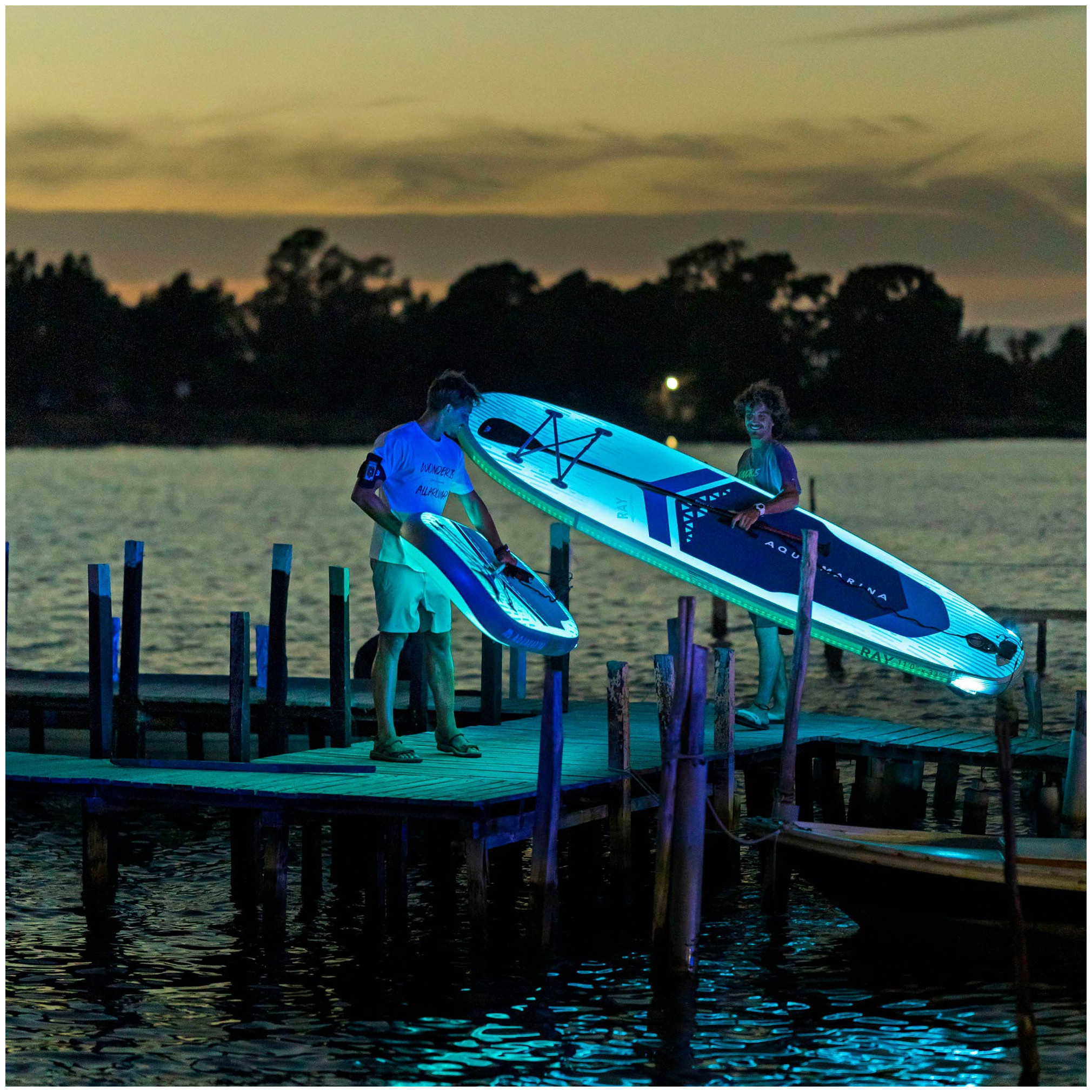 Η Φουσκωτή Σανίδα SUP 11’0’’ Aqua Marina Ray είναι η ιδανική επιλογή για τους λάτρεις των θαλάσσιων σπορ. Κατασκευασμένη από φιλικό προς το περιβάλλον TPU υλικό, αυτή η σανίδα είναι ελαφρύτερη κατά 23% σε σύγκριση με τις παραδοσιακές PVC σανίδες, ενώ είναι 29% μικρότερη όταν είναι συσκευασμένη, διευκολύνοντας τη μεταφορά της. Διαθέτει 7 επιλογές χρώματος φωτισμού, όπως Λευκό, Κόκκινο, Πράσινο, Μπλε, Κίτρινο, Γαλάζιο και Φούξια, με 4 λειτουργίες φωτισμού: Στατικό, Αναπνοή, Λάμψη και Χαμαιλέων. Η τεχνολογία Drop-Stitch από TPU WOVEN προσφέρει μεγάλη ακαμψία και αντοχή, ενώ το νέο ανάγλυφο αντιολισθητικό υλικό EVA εξασφαλίζει απόλυτο κράτημα και άνεση. Με μήκος 335cm, πλάτος 84cm και πάχος 15cm, η σανίδα έχει όγκο 335L και ωφέλιμο φορτίο 150Kg. Περιλαμβάνει οικολογικό σακίδιο μεταφοράς, κουπί Sports III, λουρί αστραγάλου, συρόμενο πτερύγιο, αντλία αέρος διπλής ενέργειας Liquid Air V1 και τηλεχειριστήριο με αδιάβροχη θήκη μπράτσου. Με εγγύηση 2 χρόνια, αυτή η σανίδα είναι η τέλεια επιλογή για αξέχαστες στιγμές στη θάλασσα.