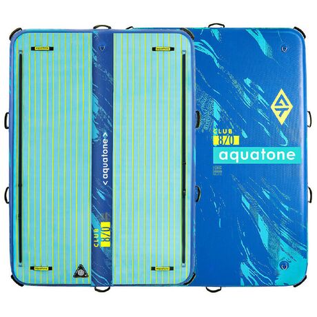 Το Club 8 της Aquatone μια εξωτερική πλατφόρμα γιόγκα και μια φορητή βάση για ηλιοθεραπεία ή γυμναστική με εντυπωσιακή και καινοτόμα τεχνολογία! Διπλώστε ή ξεδιπλώστε γρήγορα την πλατφόρμα με την κεντρική γραμμή δίπλωσης. Η πλατφόρμα του CLUB διαθέτει ένα αντιολισθητικό μαλακό επίθεμα EVA που παρέχει ασφάλεια και έλκυση για όλες τις δραστηριότητες νερού. ΟΙ ραφές στο EVA PAD είναι έξυπνα σχεδιασμένες για ευκολότερη δίπλωση. Διαθέτει πολλαπλές λαβές και ιμάντες κατασκευασμένες με νεοπρέν σε όλες τις πλευρές της πλατφόρμας για ασφάλεια στηρίξεις, βαλβίδα ασφαλείας υψηλής ποιότητας και D-Ring κρίκους για να μπορείτε να σταθεροποιήσετε σε ένα σημείο την πλατφόρμα ή να ρυμουλκήσετε την πλατφόρμα. Παρέχει επίσης την δυνατότητα αποθήκευσης αντικειμένων. Απολαύστε το δικό σας ιδιωτικό νησί με φίλους και οικογένεια σε μια όμορφη μέρα με το Club 8 της Aquatone!