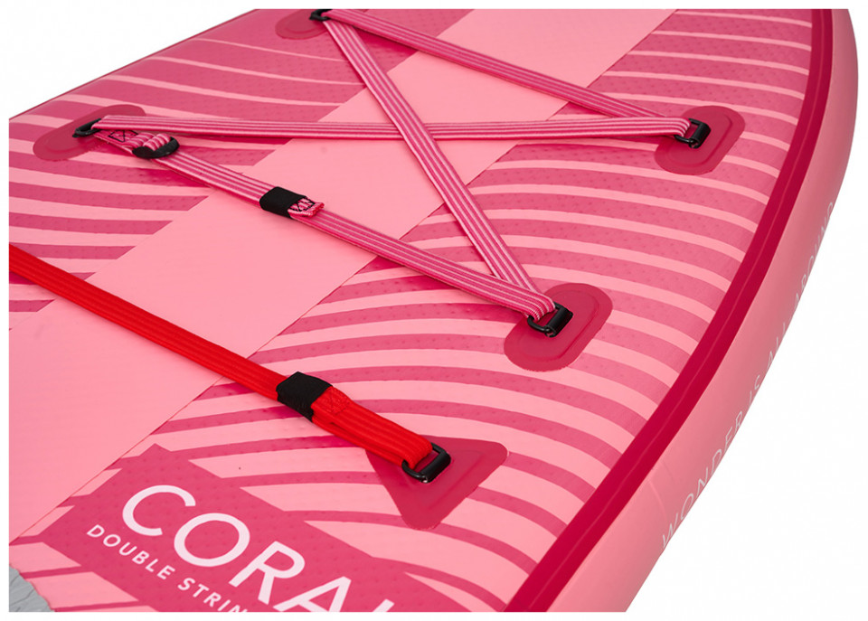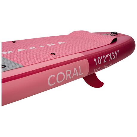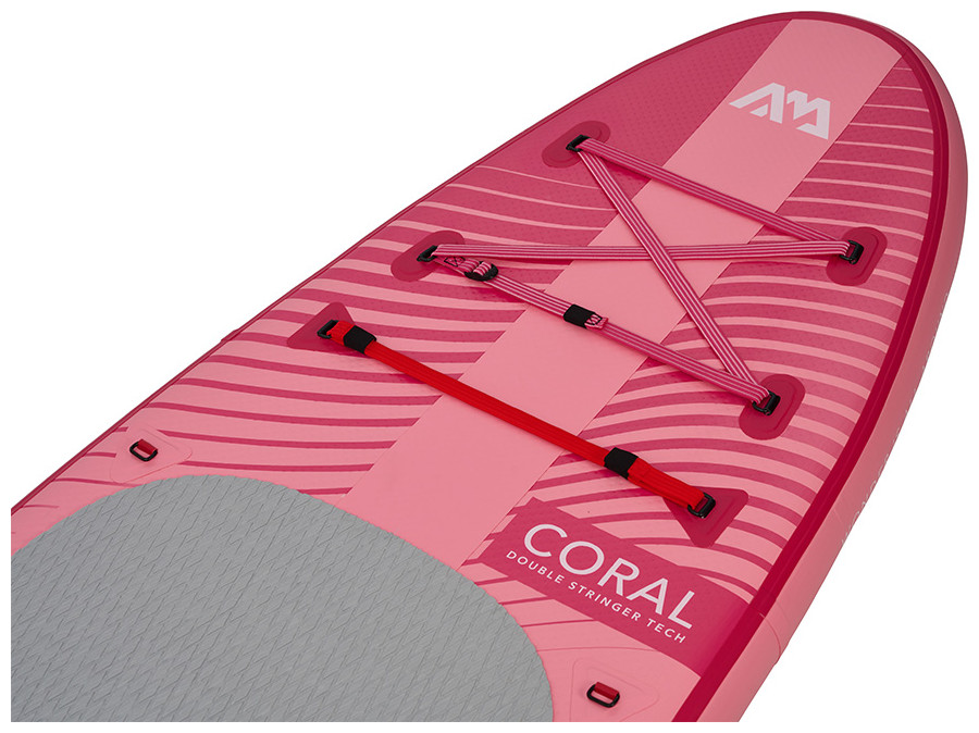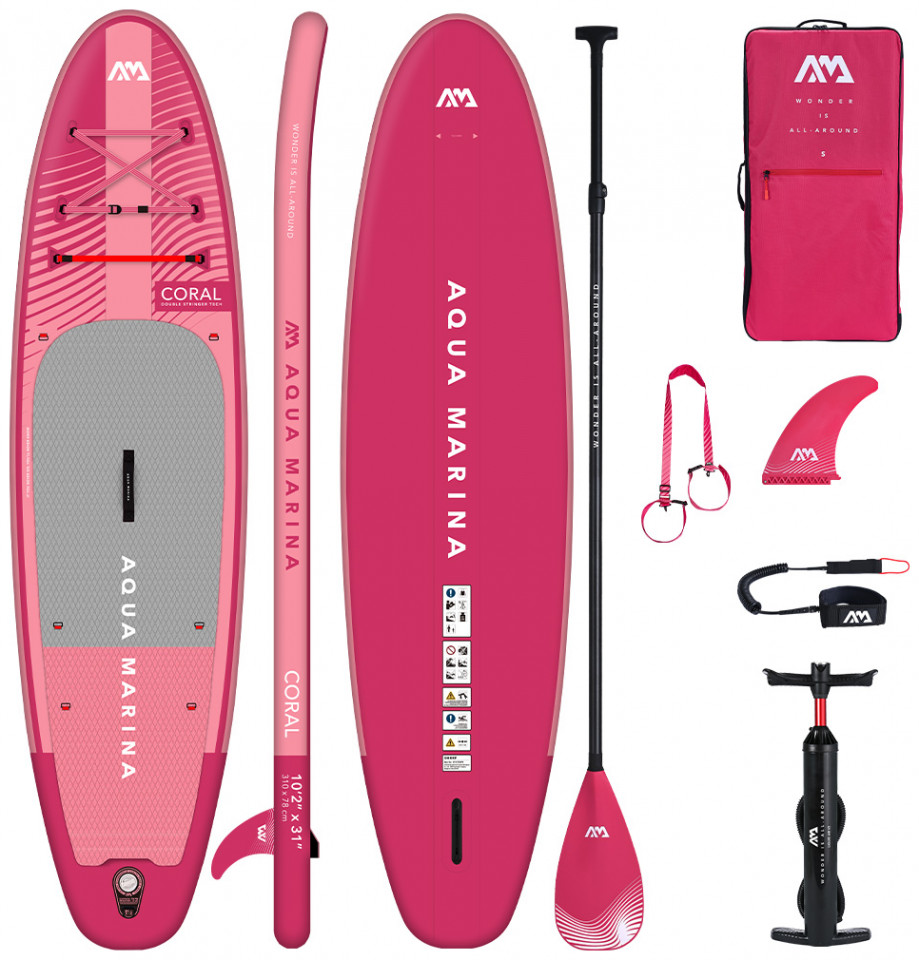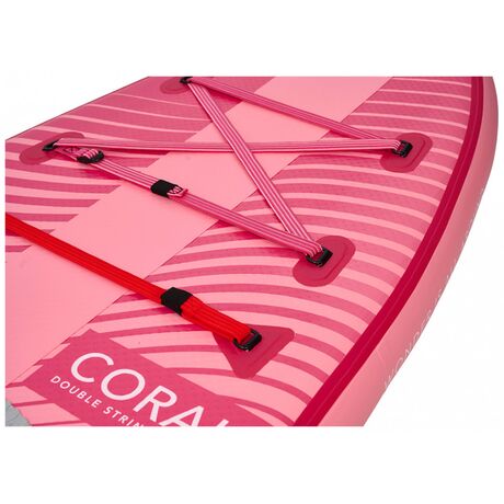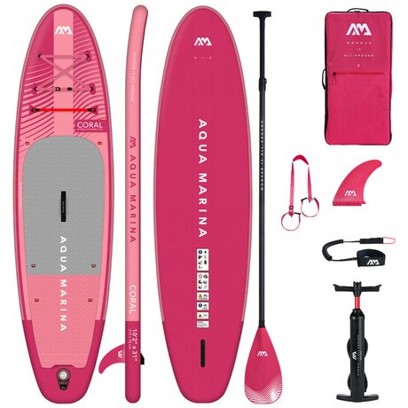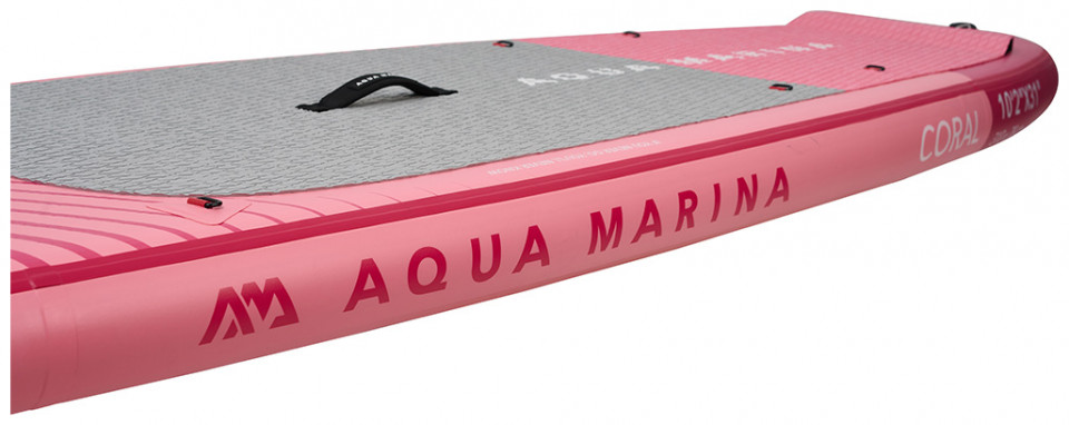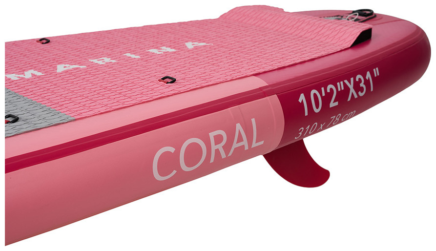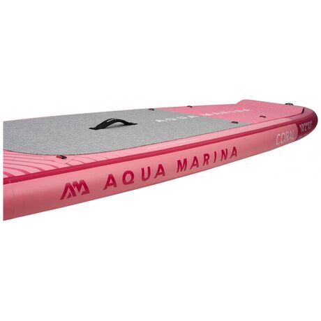 Φουσκωτή Σανίδα Sup Coral της Aqua Marina νέο μοντέλο του 2023 τυπωμένο με υπέροχους χρωματικούς συνδυασμούς σε όλης την επιφάνεια της σανίδας, για να απολαμβάνεται με στυλ και ανανεωμένη διάθεση το αγαπημένο σας χόμπι. Νέο Ανάγλυφο αντιολισθητικό υλικό με κυματισμό άμμου που παρέχει επιπλέον κράτημα και άνεση και τετραγωνισμένη ουρά για καλύτερη σταθερότητα. Διπλό σύστημα συγκράτησης αντικειμένων Red Strap™ για ασφαλέστερη και μεγαλύτερη μεταφορά αντικειμένων. Συμπαγής χειρολαβή Neoprene με επένδυση ιμάντα για μεγαλύτερη αντοχή και άνεση. Διαθέτει κρίκους από ανοξείδωτο ατσάλι για τοποθέτηση καθίσματος, που το μετατρέπει σε sit-on-top kayak. Αποσπώμενο slide-in πτερύγιο. Η Συσκευασία περιλαμβάνει όλα τα απαραίτητα αξεσουάρ για να απολαμβάνεται με άνεση και ασφάλεια το αγαπημένο σας χόμπι. Αναλυτικότερα, την σανίδα Sup συνοδεύουν 1 ρυθμιζόμενο κουπί αλουμινίου 3ων μερών, σάκος μεταφοράς, λουρί αστραγάλου και αντλία αέρος διπλής ενέργειας Liquid Air V1.