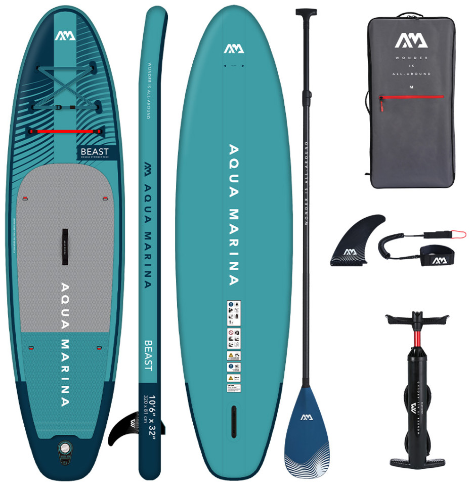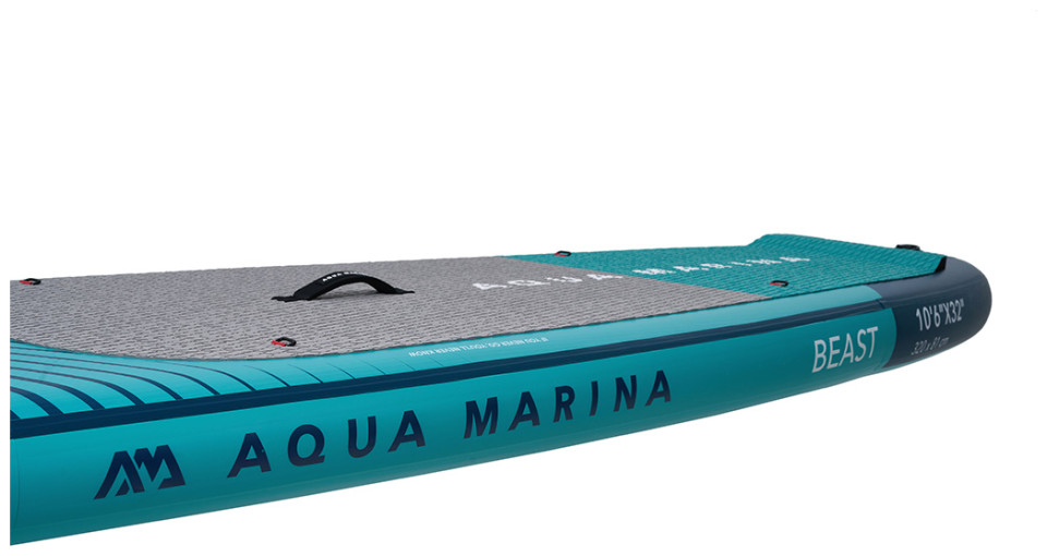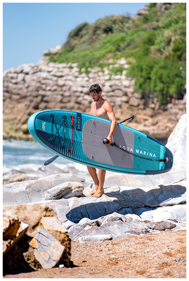 Φουσκωτή Σανίδα Sup Beast της Aqua Marina νέο μοντέλο του 2023 τυπωμένο με υπέροχους χρωματικούς συνδυασμούς σε όλης την επιφάνεια της σανίδας, για να απολαμβάνεται με στυλ και ανανεωμένη διάθεση το αγαπημένο σας χόμπι. Νέο Ανάγλυφο αντιολισθητικό υλικό με κυματισμό άμμου που παρέχει επιπλέον κράτημα και άνεση και τετραγωνισμένη ουρά για καλύτερη σταθερότητα. Διπλό σύστημα συγκράτησης αντικειμένων Red Strap™ για ασφαλέστερη και μεγαλύτερη μεταφορά αντικειμένων. Συμπαγής χειρολαβή Neoprene με επένδυση ιμάντα για μεγαλύτερη αντοχή και άνεση. Διαθέτει κρίκους από ανοξείδωτο ατσάλι για τοποθέτηση καθίσματος, που το μετατρέπει σε sit-on-top kayak. Αποσπώμενο slide-in πτερύγιο. Η Συσκευασία περιλαμβάνει όλα τα απαραίτητα αξεσουάρ για να απολαμβάνεται με άνεση και ασφάλεια το αγαπημένο σας χόμπι. Αναλυτικότερα, την σανίδα Sup συνοδεύουν 1 ρυθμιζόμενο κουπί αλουμινίου 3ων μερών, σάκος μεταφοράς, λουρί αστραγάλου και αντλία αέρος διπλής ενέργειας Liquid Air V1.