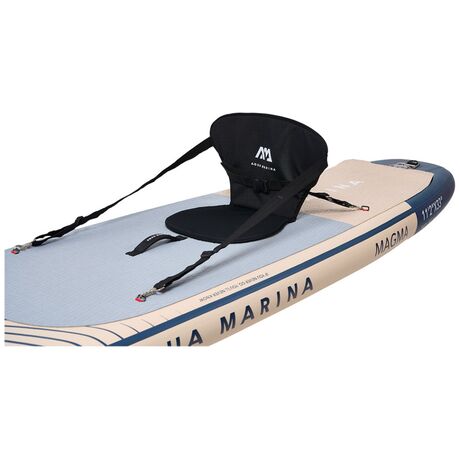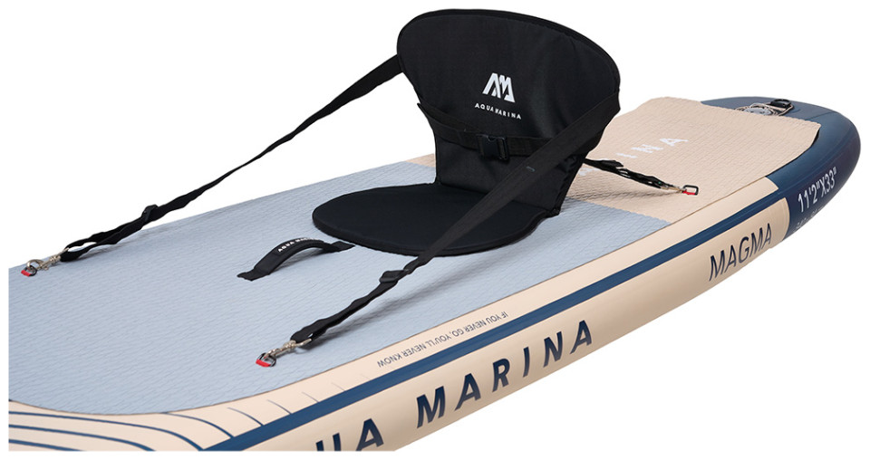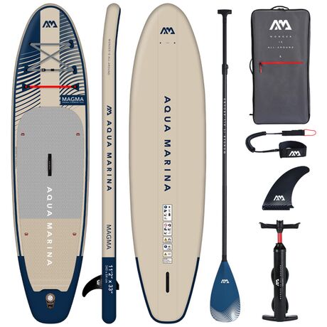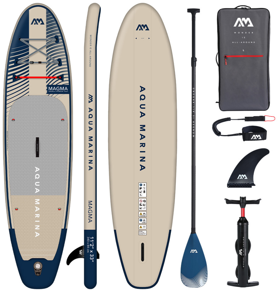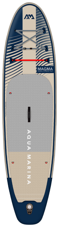 Φουσκωτή Σανίδα Sup Magma της Aqua Marina νέο μοντέλο του 2023 τυπωμένο με υπέροχους χρωματικούς συνδυασμούς σε όλης την επιφάνεια της σανίδας, για να απολαμβάνεται με στυλ και ανανεωμένη διάθεση το αγαπημένο σας χόμπι. Νέο Ανάγλυφο αντιολισθητικό υλικό με κυματισμό άμμου που παρέχει επιπλέον κράτημα και άνεση και τετραγωνισμένη ουρά για καλύτερη σταθερότητα. Διπλό σύστημα συγκράτησης αντικειμένων Red Strap™ για ασφαλέστερη και μεγαλύτερη μεταφορά αντικειμένων. Συμπαγής χειρολαβή Neoprene με επένδυση ιμάντα για μεγαλύτερη αντοχή και άνεση. Διαθέτει κρίκους από ανοξείδωτο ατσάλι για τοποθέτηση καθίσματος, που το μετατρέπει σε sit-on-top kayak. Αποσπώμενο slide-in πτερύγιο. Η Συσκευασία περιλαμβάνει όλα τα απαραίτητα αξεσουάρ για να απολαμβάνεται με άνεση και ασφάλεια το αγαπημένο σας χόμπι. Αναλυτικότερα, την σανίδα Sup συνοδεύουν 1 ρυθμιζόμενο κουπί αλουμινίου 3ων μερών, σάκος μεταφοράς, λουρί αστραγάλου και αντλία αέρος διπλής ενέργειας Liquid Air V1.
