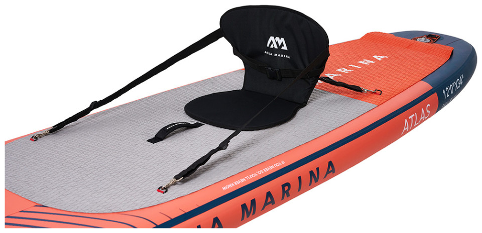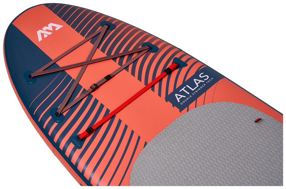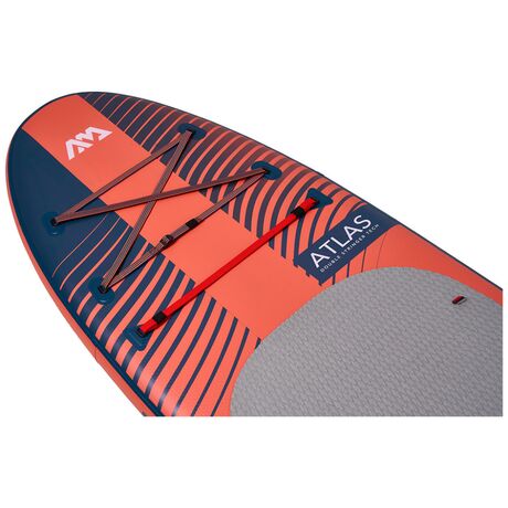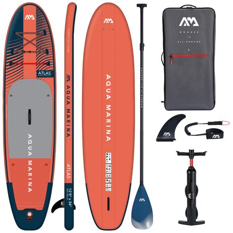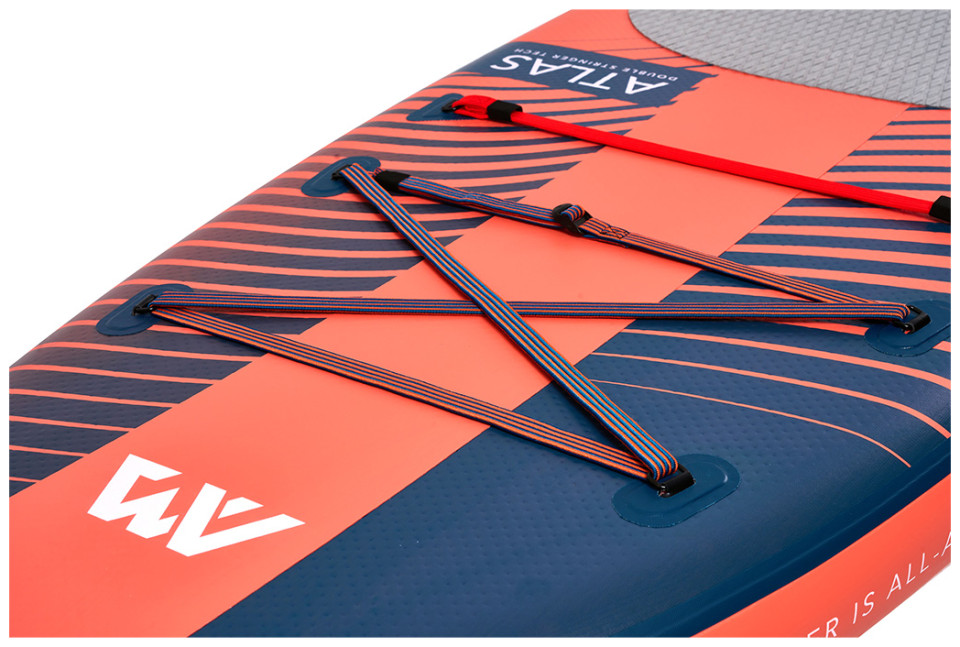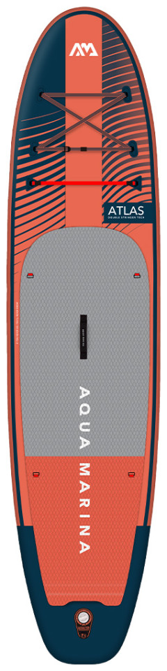 Φουσκωτή Σανίδα Sup Atlas της Aqua Marina νέο μοντέλο του 2023 τυπωμένο με υπέροχους χρωματικούς συνδυασμούς σε όλης την επιφάνεια της σανίδας, για να απολαμβάνεται με στυλ και ανανεωμένη διάθεση το αγαπημένο σας χόμπι. Νέο Ανάγλυφο αντιολισθητικό υλικό με κυματισμό άμμου που παρέχει επιπλέον κράτημα και άνεση και τετραγωνισμένη ουρά για καλύτερη σταθερότητα. Διπλό σύστημα συγκράτησης αντικειμένων Red Strap™ για ασφαλέστερη και μεγαλύτερη μεταφορά αντικειμένων. Συμπαγής χειρολαβή Neoprene με επένδυση ιμάντα για μεγαλύτερη αντοχή και άνεση. Διαθέτει κρίκους από ανοξείδωτο ατσάλι για τοποθέτηση καθίσματος, που το μετατρέπει σε sit-on-top kayak. Αποσπώμενο slide-in πτερύγιο. Η Συσκευασία περιλαμβάνει όλα τα απαραίτητα αξεσουάρ για να απολαμβάνεται με άνεση και ασφάλεια το αγαπημένο σας χόμπι. Αναλυτικότερα, την σανίδα Sup συνοδεύουν 1 ρυθμιζόμενο κουπί αλουμινίου 3ων μερών, σάκος μεταφοράς, λουρί αστραγάλου και αντλία αέρος διπλής ενέργειας Liquid Air V2.
