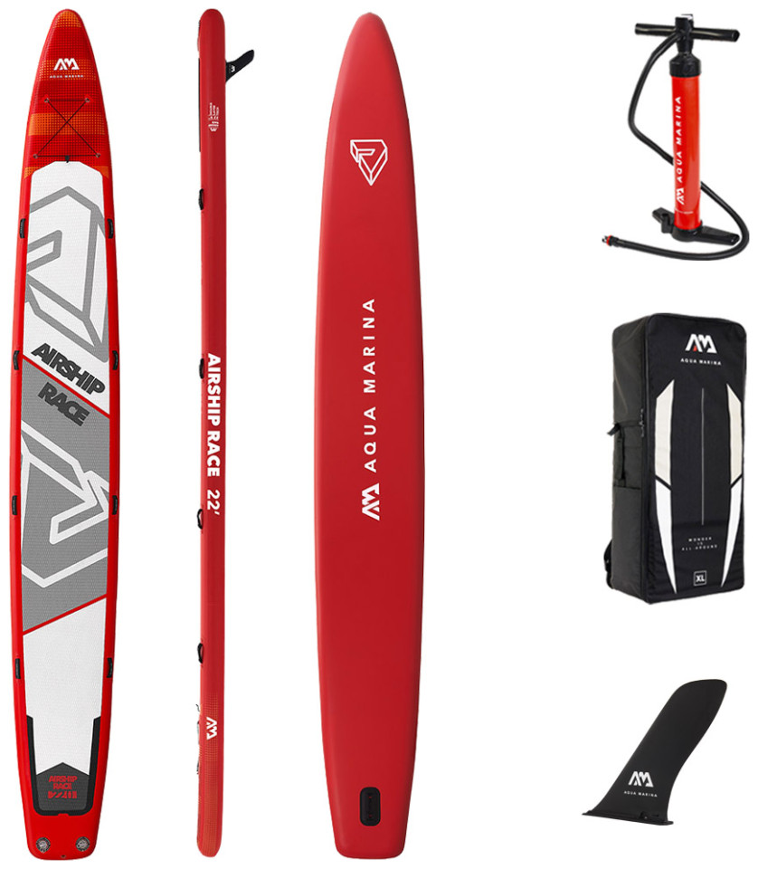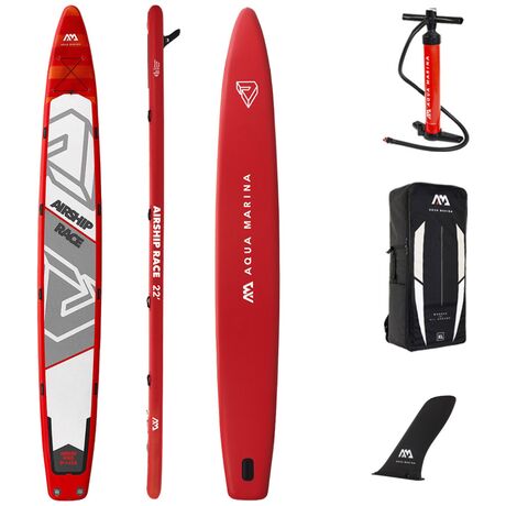 Η Φουσκωτή σανίδα Sup Airship-Team Race τηs Aqua Marina είναι κατασκευασμένη με αεροδιναμικό σχεδιασμό για μεγαλύτερη απόδοση και γρήρη πορεία. Διαθέτει τεχνολογία διπλού υλικού και μικρού βάρους, 20 -25% μικρότερο βάρος σε συνδυασμό με 25% -30% μεγαλύτερη ακαμψία. Υπάρχει τύπωμα σε όλες τις επιφάνειες που προσδίδει υπέροχη εμφάνιση και επένδυση σε όλο το μήκος από ανάγλυφο αντιολισθητικό υλικό για απόλυτη σταθερότητα και άνεση. Το Sup Airship-Team Race έχει ακόμη 8 ανθεκτικές χειρολαβές από νεοπρενιο με επένδυση ιμάντα για εύκολη μεταφορά, 2 βαλβίδες αέρος για γρηγορότερο φούσκωμα και ξεφούσκωμα και αποσπώμενο slide-in πτερύγιο Racing. Μαζι με τη φουσκωτή Σανίδα Sup περιλαμβάνονται επίσεις σάκο μεταφοράς με φερμουάρ, και 2 αντλίες αέρος διπλής ενέργειας Liquid Air V1.