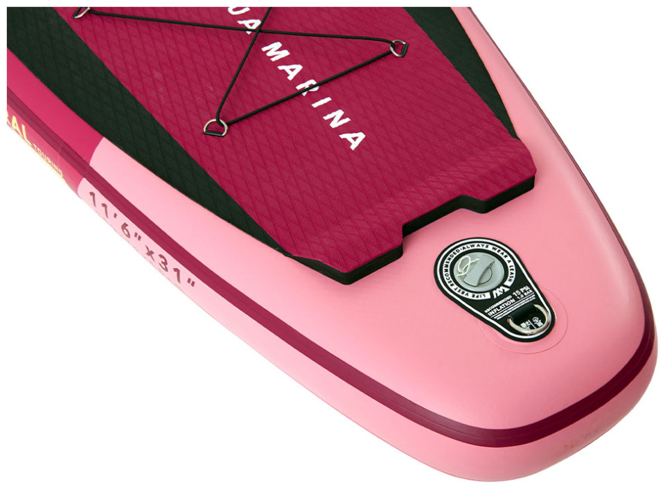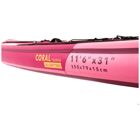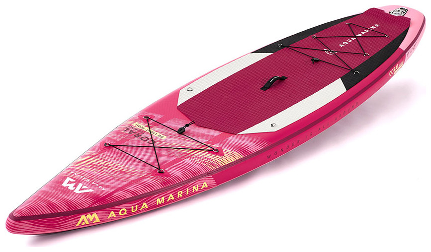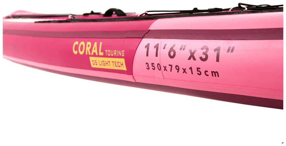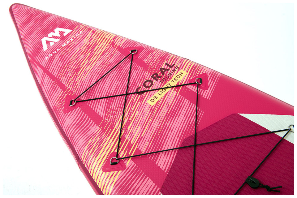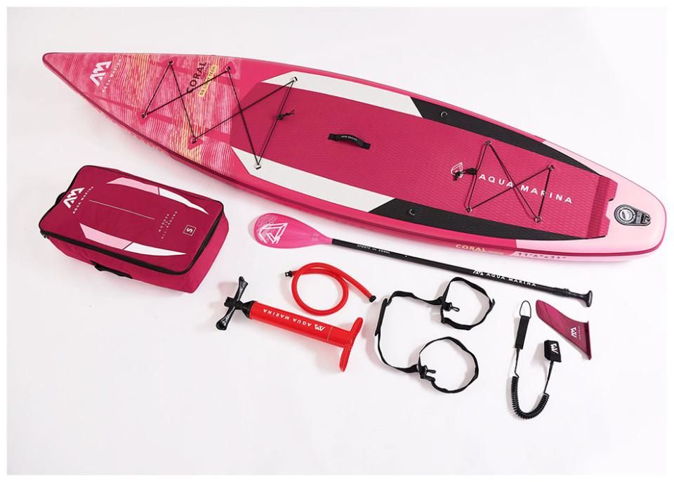 H φουσκωτή σανίδα Coral Touring της Aqua Marina έχει μήκος 3.5 μέτρα. Eίναι άνετη στη μεταφορά και αποθηκεύεται εύκολα. Αποτελεί έτσι εξαιρετική επιλογή για ταξίδια ή μικρές εκδρομές, αφού μπορείτε να την ξεφουσκώσετε μετά τη χρήση και να την βάλετε σε τσάντα πλάτης. Η σανίδα είναι σχεδιασμένη με σκοπό τη χρήση σε μεγαλύτερες διαδρομές, αφού επιτρέπει μεγαλύτερες ταχύτητες, ώστε να καλύπτετε σύντομα μακρινές αποστάσεις. Έχει ένα μεγάλο πτερύγιο, το οποίο επιτρέπει καλή ευθυγράμμιση και λιγότερη τριβή. Είναι ιδανικό για SUP σε ήρεμα νερά, που δε χρειάζονται συνεχείς ελιγμοί. Οι διαστάσεις της σανίδας είναι 350x79x15 εκατοστά, ο όγκος της 328 λίτρα και έχει βάρος 9.6 κίλα. Το μέγιστο βάρους του αναβάτη δεν μπορεί να ξεπερνάει τα 130 κιλά.