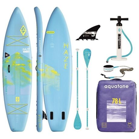 Η φουσκωτή σανίδα Sup Haze 11'4" της Aquaton είναι πολύ ευέλικτο σε όλες της συνθήκες νερού και ειδικότερα σε ήρεμα νερά και μικρά κύματα. Το πλατύ του κατάστρωμα το καθιστούν από τα πλέον σταθερά και ασφαλή. Είναι ανθεκτικό και ελαφρύ. Η καινοτόμα τεχνολογία της Aquatone αυξάνει την ακαμψία της σανίδας με την ενσωμάτωση μίας ειδικής ενισχυτικής λωρίδας που διατρέχει το Sup σε όλο του το μήκος και σε πλάτος. Διαθέτει υψηλής ποιότητας βαλβίδα ασφαλείας για την απόλυτη σφράγιση του iSup, ενσωματωμένα κορδόνια μεταφοράς φορτίου, χειρολαβή μεταφοράς όπως και σύστημα 2 πτερυγίων 5-INCH με σχεδιασμό Push In για εύκολη και σταθερή τοποθέτηση τους. Η μοναδική κατασκευή του καταστρώματος δίνουν τη δυνατότητα στην σανίδα να συσκευάζεται μόνο στο μισό μέγεθος! Εντυπωσιάστε και χαρείτε το αγαπημένο σας σπορ με τη φουσκωτή σανίδα Haze 11'4" της Aquaton!