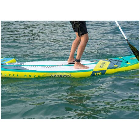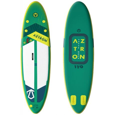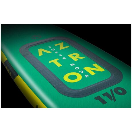 Φουσκωτή Σανίδα Sup Super Nova 11' της Aztron εφοδιασμένη με διπλό θάλαμο LITE Tech 60 λίτρων για ασφαλέστερη πλεύση και αυξημένη ακαμψία. Χάρις στο smart folding concept τo Neo Nova καταλαμβάνει τον μισό χώρο όταν διπλώνει σε σχέση τα Sup ανάλογου μεγέθους! Durable drop-stitch core material Υψηλής ποιότητας drop – stitch στον πυρήνα του για αυξημένη αντοχή. Αντιολισθητική επίστρωση καταστρώματος με EVA βάθους 4mm σε σχήμα διαμαντιού. 4+1 D-rings για ασφαλή πρόσδεση του εξοπλισμού μας και της δέστρας ασφαλείας. Σύστημα εύκολης υποδοχής και ασφάλισης 2 πτερυγίων κατεύθυνσης. Το κατάστρωμα έχει επενδυθεί με υψηλής ποιότητας αντιολισθητικό υλικό που βελτιώνει την πρόσφυση στα πέλματα και προσφέρει αυξημένη ισορροπία. Η λαβή μεταφοράς βρίσκεται στο σωστό σημείο και το Sup είναι τόσο ελαφρύ που μπορούμε να το κουβαλάμε για χιλιόμετρα! Χάρις στην αυξημένη ακαμψία που προσδίδει ο διπλός θάλαμος Double Chamber, τα ενισχυμένα ρέλια που ανταποκρίνονται καλά στον πλάγιο κυματισμό και το πολύ υψηλής πυκνότητας drop stich υλικό που βρίσκεται στο πυρήνα του, η αίσθηση που έχετε από ένα iSUP της Aztron είναι αυτή μίας σταθερής και όχι φουσκωτής σανίδας! H εξαιρετική υδροδυναμική σχεδίαση, η απτή ποιότητα κατασκευής, το άψογο φινίρισμα και τα εντυπωσιακά ψηφιακά που συναντάμε στα Sup της Aztron κάνουν το SUPER NOVA και τον αναβάτη του να ξεχωρίζουν!