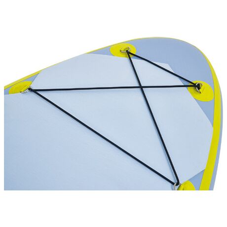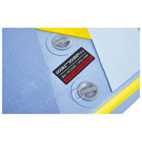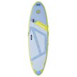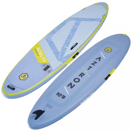 Φουσκωτή Σανίδα Sup Venus 10'8'' της Aztron σχεδιάστηκε για να μπορεί να λειτουργεί και ως θαλάσσια πλατφόρμα εξάσκησης Fitness και Yoga! Χάρις στις άνετες διαστάσεις (325 εκ. μήκος, 86 εκ. πλάτος) και το παχύ προφίλ του, είναι πολύ σταθερό ώστε οι διάφορες ασκήσεις και στάσεις να εκτελούνται με άνεση. Έχει ληφθεί μέριμνα για την αποφυγή γλιστρήματος του αναβάτη αφού σχεδόν όλη η επιφάνεια του καταστρώματος είναι ανάγλυφη και καλυμμένη με απαλό EVA αντιολισθητικό υλικό. Η ιδιαίτερα εκλεπτυσμένη σχεδίαση και τα απαλά του χρώματα προδιαθέτουν θετικά και δημιουργούν μία ωραία εικόνα άνεσης και χαλάρωσης! Σε μία σχετικά ήρεμη θάλασσα η εμπειρία της άσκησης πάνω σε ένα Venus είναι πραγματικά ξεχωριστή. Ταυτόχρονα η αυξημένη μυϊκή συνεργία που απαιτεί η ισορροπία στο νερό βοηθά στην εκτέλεση σύνθετων προγραμμάτων άσκησης και συγκέντρωσης. Ασφαλή μεταφορά φορτίων χάρις στο ειδικά τοποθετημένο σύστημα στο μπροστινό μέρος! Ενσωματωμένη χειρολαβή για εύκολη και άνετη μεταφορά. Όλες οι λαβές της Aztron φτιάχνονται από υψηλής ποιότητας νεοπρένιο και ενισχύονται με λαστιχένιο μαξιλαράκι ώστε να έχουν αντοχή και σίγουρο κράτημα. Αντιολισθητική επίστρωση EVA στο κατάστρωμα με 4mm αυλάκωση σε διαμαντένιο σχέδιο, προσφέρει την απόλυτη σταθερότητα στο πέλμα. Παρότι το Venus είναι fitness focused , είναι ταυτόχρονα και ένα πολύ καλό iSUP για κωπηλασία!. Το αρμονικό All Around σχήμα του και οι κορυφαίες Double – Double τεχνολογίες της Aztron ( διπλός θάλαμος και διπλή επίστρωση Fusion), δίνουν ένα πολύ στιβαρό και ελαφρύ SUP με μεγάλες ικανότητες σε όλα τα νερά, που δεν έχει να ζηλέψει σε τίποτα από τα υπόλοιπα SUP της εταιρείας. Πρόκειται τέλος για ένα πανέμορφο iSUP με άψογη ποιότητα κατασκευής και ιδιαίτερη προσοχή στη λεπτομέρεια.