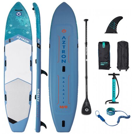 Η φουσκωτή σανίδα όρθιας κωπηλασίας Galaxie 16'00" της Aztron αποτελεί ιδανική επιλογή για παρέες που αγαπούν τις προκλήσεις! Χάρη στον υδροδυναμικό σχεδιασμό της με τα διπλά πτερύγια, το μεγαλύτερο μέγεθος και το διευρυμένο πλάτος στα 86 cm, η σανίδα αυτή είναι κατάλληλη για να παρέχει άνεση, σταθερότητα και εξαιρετικό έλεγχο σε έως 3 αναβάτες. Διαθέτει ειδική κατασκευή με Διπλό Αεροθάλαμο και γέμιση από υψηλής πυκνότητας drop stitch υλικό με ρέλια ενισχυμένα από πολλαπλές επιστρώσεις, για να εξασφαλίζει ταυτόχρονα μεγάλη ακαμψία, ελαφριά δομή και εξαιρετική αντοχή στον πλάγιο κυματισμό. Η σταθερότητά της ενισχύεται και από τον ειδικό σχεδιασμό διπλής αντιολισθητικής επιφάνειας με αυλακώσεις 5 mm, που προσφέρει άνεση και ευστάθεια ακόμη και κατά την πλεύση σε κυματώδη θάλασσα. Το προϊόν ενσωματώνει έξυπνο σύστημα ιμάντων στο εμπρόσθιο μέρος για την αποθήκευση του εξοπλισμού και πολλαπλές χειρολαβές για την εύκολη μεταφορά και ρυμούλκησή του. Η σανίδα έχει διαστάσεις 487 × 86 × 15 cm και βάρος 20 kg, ενώ μπορεί να αντέξει φορτίο έως 280 kg. Συνοδεύεται από τρόμπα χειρός διπλής ενέργειας, σετ αποσπώμενων πτερυγίων, 3 ιμάντες ασφαλείας, 3 ρυθμιζόμενα κουπιά αλουμινίου και τσάντα για να αποθηκεύετε και να μεταφέρετε εύκολα τον εξοπλισμό της αγαπημένης σας δραστηριότητας! Πρόκειται για μια επιλογή εξαιρετικής σταθερότητας και ταχύτητας, ιδανική για παρέες ατόμων που αγαπούν τα θαλάσσια σπορ!