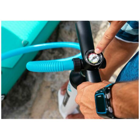 Η τρόμπα Sup της Aquatone είναι διπλής δράσης και υψηλής πίεσης που σας επιτρέπει να φουσκώσετε το Sup σας γρήγορα και χωρίς να καταβάλετε μεγάλη προσπάθεια. Ο σχεδιασμός διπλής δράσης εισάγει τον αέρα στο Sup με συνεχόμενη ροή και η ενσωματωμένη βαλβίδα μέτρησης της πίεσης μας βοηθά να έχουμε κάθε στιγμή τον έλεγχο του φουσκώματος.