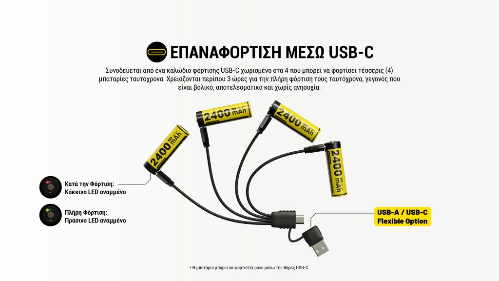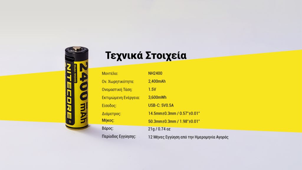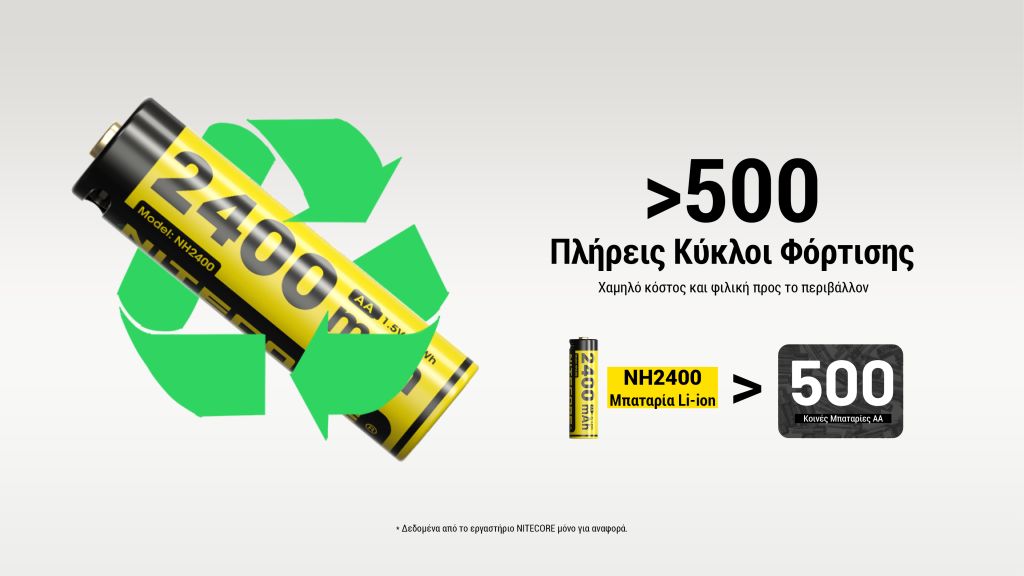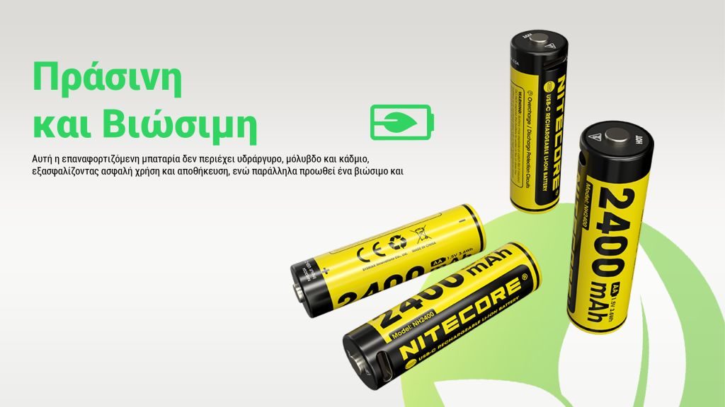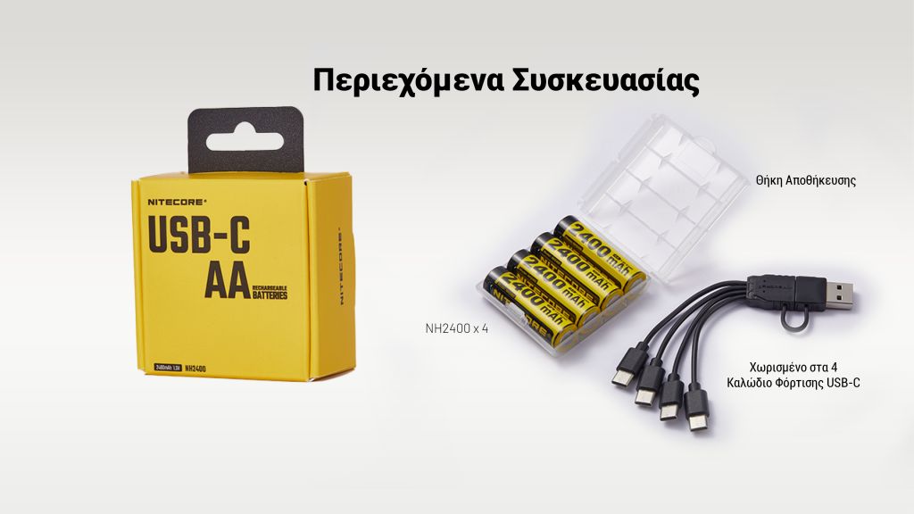 ΜΠΑΤΑΡΙΑ NITECORE Rechargable ΑΑ2400 1.5v Χ4 + Καλώδιο φόρτισης, NH2400