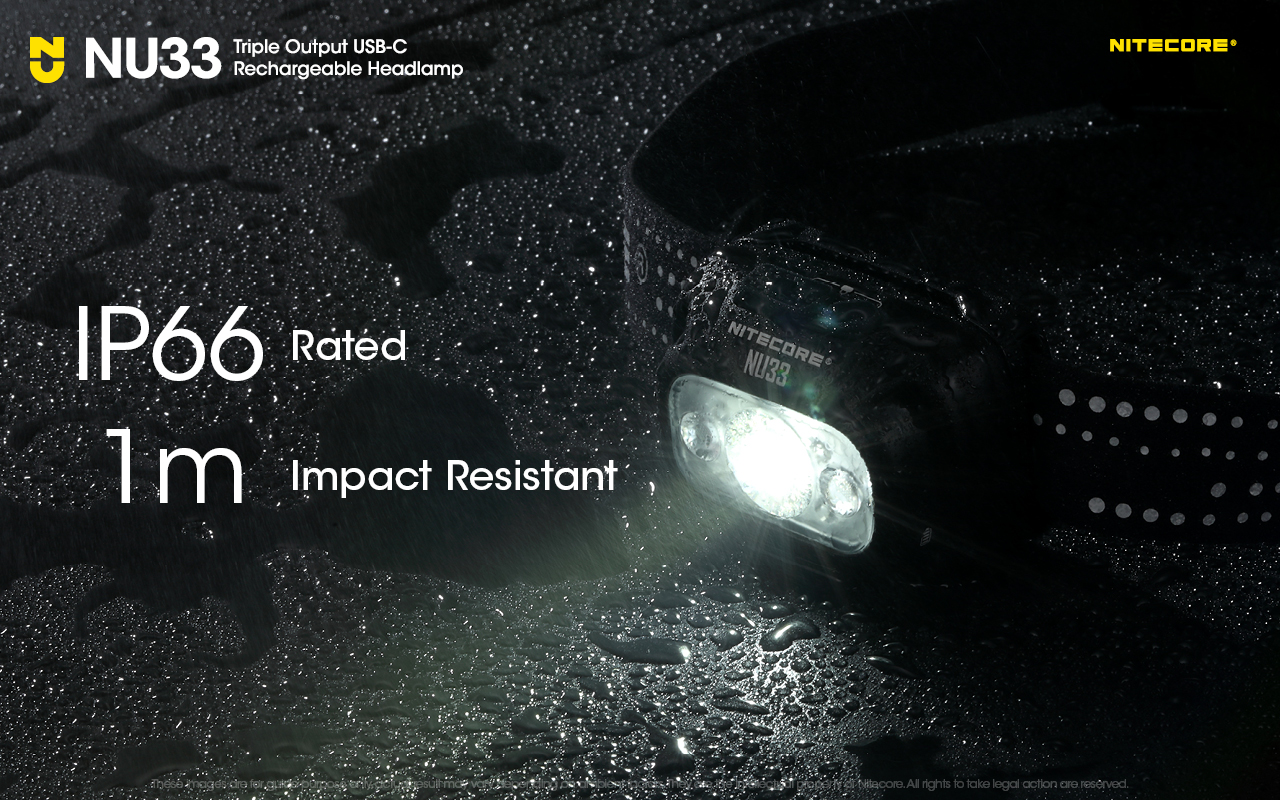 Επαναφορτιζόμενος Φακός Κεφαλής της Nitecore ιδανικός για να σας συντροφεύει σε όλες τις υπαίθριες δραστηριότητες σας. Με μετάδοση φωτισμού πάνω από το 94% είναι ιδικά σχεδιασμένο ώστε να ανακλά ομοιόμορφο και απαλό φωτισμό, προστατεύοντας την όραση και μειώνοντας την κούραση των ματιών. Το εμπρός κάλυμμα / κέλυφος του NU33 είναι κατασκευασμένο από αλουμίνιο που παρέχει υψηλή διάχυση της θερμοκρασίας και τον καθιστά ιδανικό για χρήση στο εξωτερικό πολύπλοκο περιβάλλον. Επαναφορτιζόμενος μέσω της θύρας USB-C, χρειάζεται 1,5 ώρες για μια πλήρη φόρτιση και σας δίνει την δυνατότητα χρήσης έως και 9 ώρες στα 200 Lumens και 147 ώρες στα 6 Lumens. Είναι ειδικά σχεδιασμένος με φωσφορούχες κουκίδες σε γραμμές ώστε να εξασφαλίζει περιμετρική προστασία και ασφάλεια τις νυχτερινές ώρες. Διαθέτει τρεις πηγές φωτισμού με πολλαπλά επίπεδα έντασης και λειτουργίες, Κεντρικός Λευκός Φωτισμός: Turbo > High > Mid > SOS > Beacon, Βοηθητικός Κόκκινος Φωτισμός: Μόνιμα Αναμμένο > Αναβόσβημα, Βοηθητικός Λευκός Φωτισμός: Low 50 Lumens > Ultralow 6 Lumens. Με ισχύ φωτισμού μόλις 6 Lumens, το βοηθητικό λευκό φως υψηλού CRi (CRi>90) είναι ιδανικός για προσωρινό φωτισμό το βράδυ. Πιέστε δύο φορές το κομβίο ισχύος για να ενεργοποιήσετε τον πολύ χαμηλό φωτισμό των 6 Lumens. Οι ενδεικτικές λυχνίες ισχύος σας ενημερώνουν για την ενέργεια που έχει απομείνει στην μπαταρία. Τέσσερις αναμμένες λυχνίες σημαίνουν ότι η ενέργεια στην μπαταρία βρίσκεται κοντά στο 100%. Τρεις αναμμένες λυχνίες σημαίνουν ότι η ενέργεια στην μπαταρία βρίσκεται κοντά στο 75%. Δύο αναμμένες λυχνίες σημαίνουν ότι η ενέργεια στην μπαταρία βρίσκεται κοντά στο 50%. Μία αναμμένη λυχνία σημαίνει ότι η ενέργεια στην μπαταρία βρίσκεται κοντά στο 25%. Κατά την λειτουργία κλειδώματος οποιοδήποτε επίπεδο φωτισμού ή ειδική λειτουργία δεν είναι διαθέσιμα. Η λειτουργία αυτή είναι ιδανική για την αποθήκευση του φακού στο σακίδιο ή την τσέπη χωρίς κανένα πρόβλημα. Αδιάβροχος με βαθμολογία IP66 και ανθεκτικός σε πτώσεις έως και από 1 μέτρο ύψος.