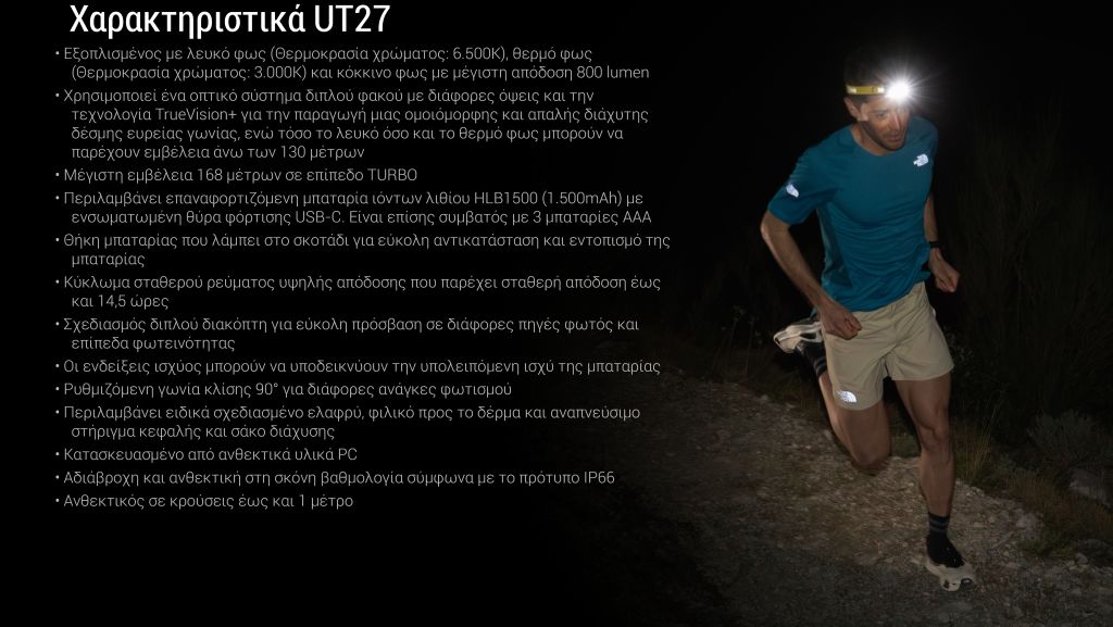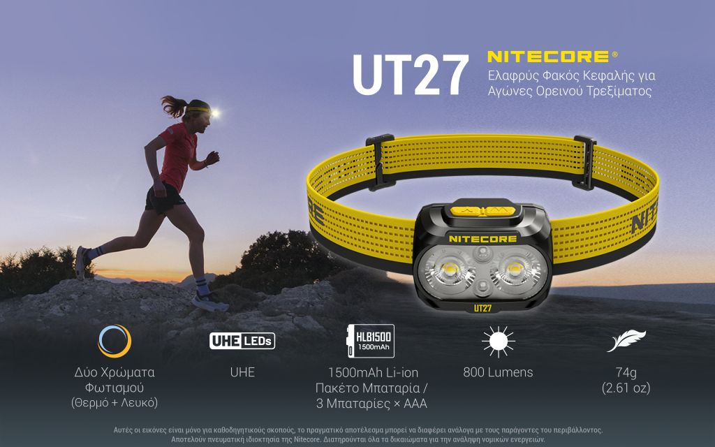 ΦΑΚΟΣ LED NITECORE HEADLAMP UT27 Pro 800Lumens + 2x HBL1500Lion Battery, White