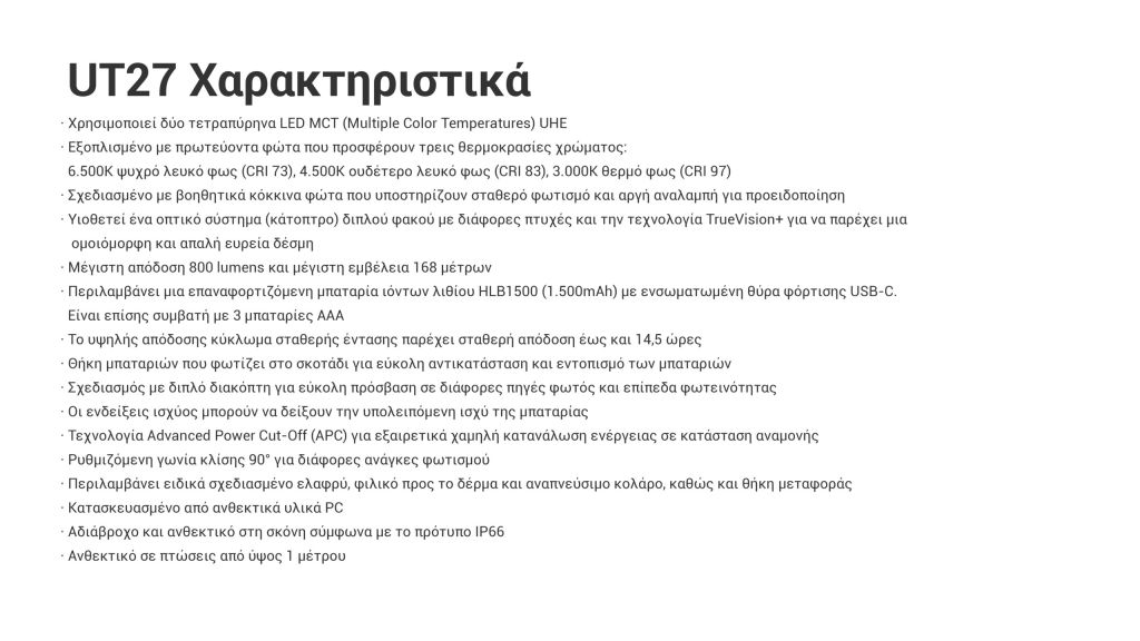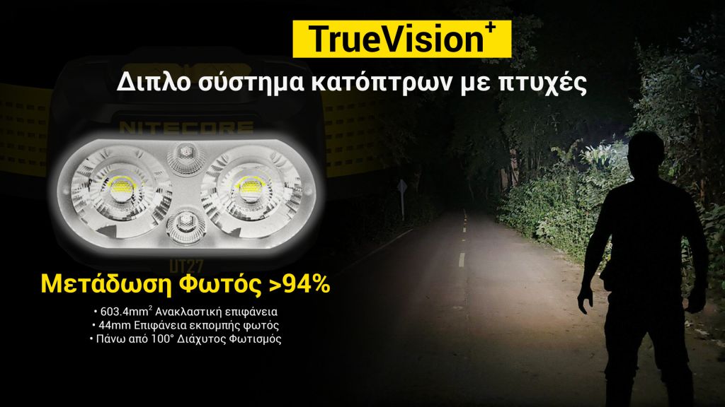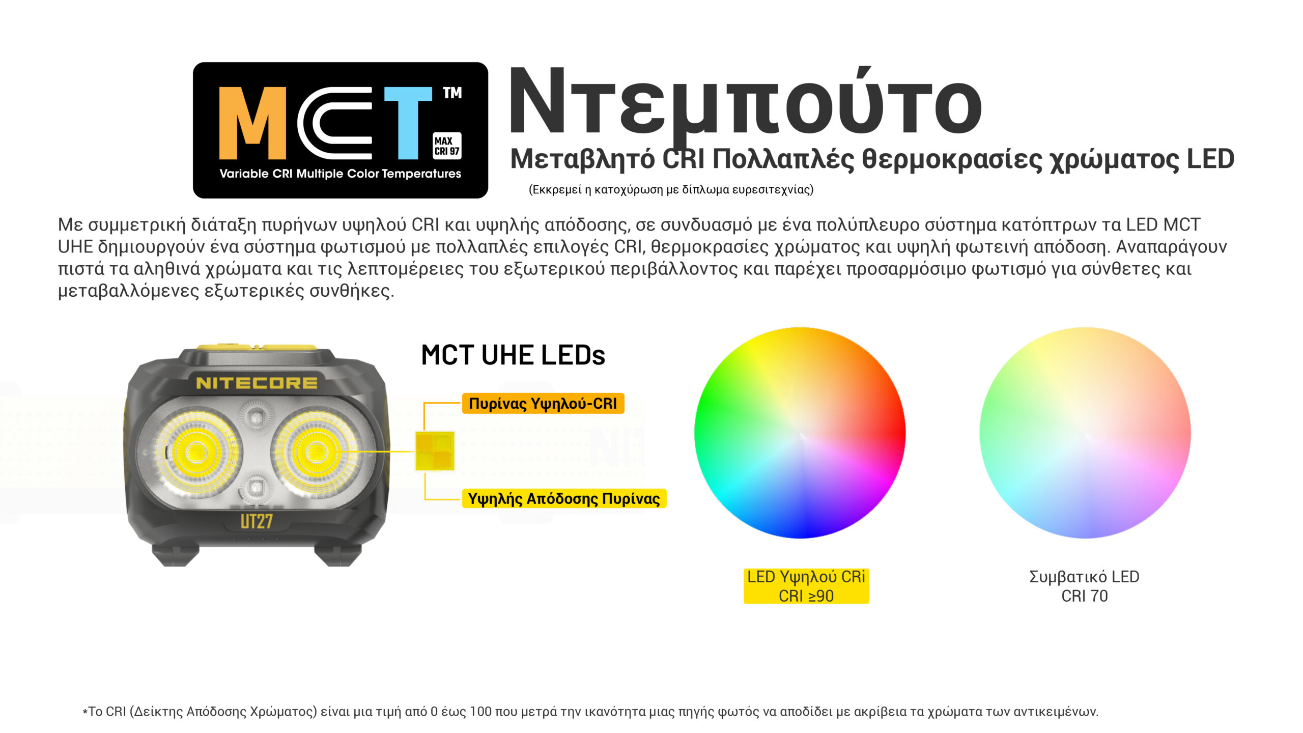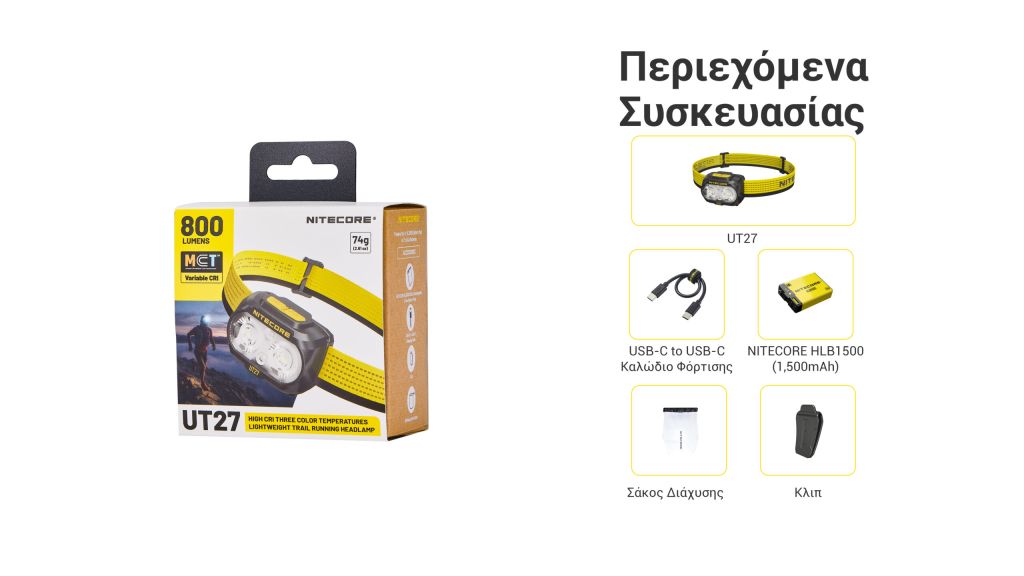 ΦΑΚΟΣ LED NITECORE HEADLAMP UT27 Pro MCT 800Lumens + 2x HBL1500Lion Battery, Black