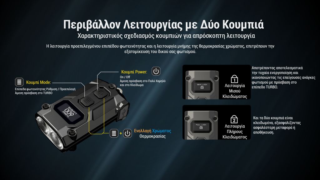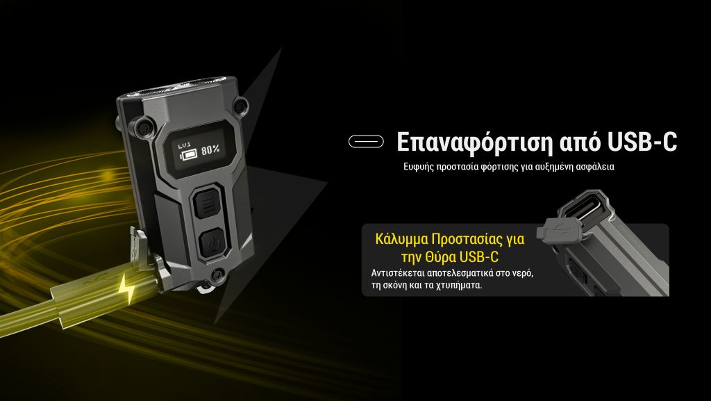ΦΑΚΟΣ LED NITECORE THUMB USB-C s/n, recha...
