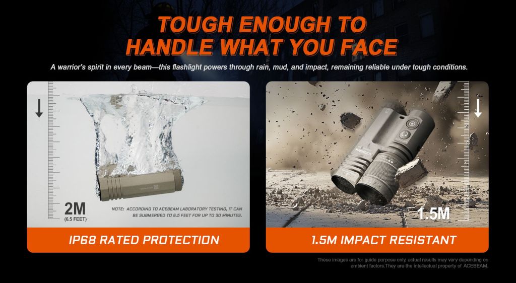 Με την επαναφορτιζόμενη και αντικαταστάσιμη μπαταρία USB-C 21700 Li-ion, ο φακός είναι ιδανικός για μεγάλα ταξίδια ή για καταστάσεις έκτακτης ανάγκης όπου ο φωτισμός είναι απαραίτητος. Η λειτουργία Strobe σε βοηθά να ξεχωρίζεις στο σκοτάδι όταν χρειάζεσαι βοήθεια. Ο Terminator M1 είναι φτιαγμένος για κάθε συνθήκη, ώστε να είσαι πάντα προετοιμασμένος για κάθε κατάσταση.