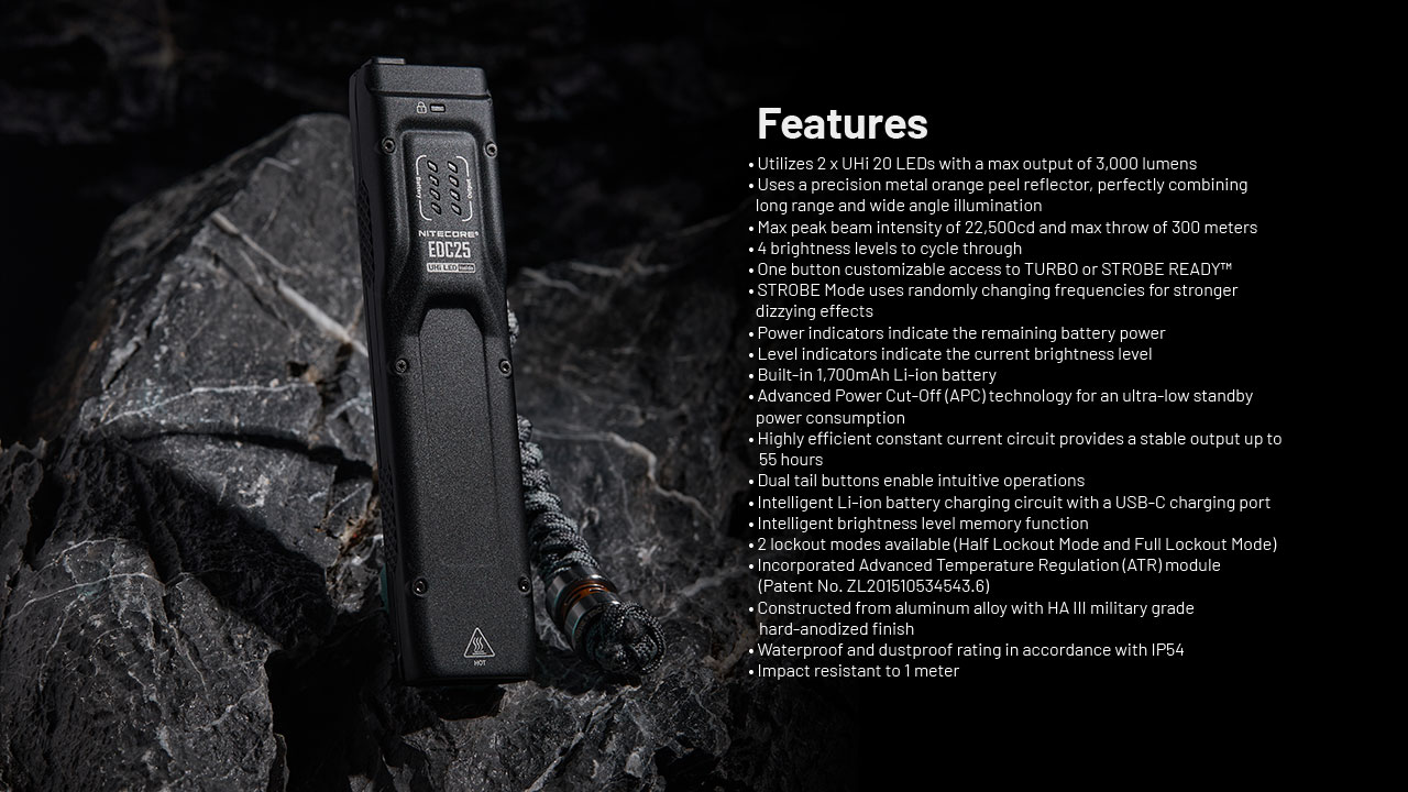 ΦΑΚΟΣ LED NITECORE EDC25, 3000Lumens