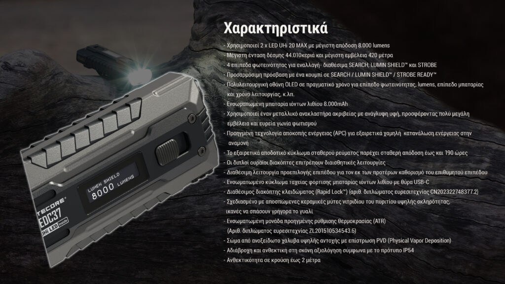 ΦΑΚΟΣ LED NITECORE EDC37, 8000Lumens, UHi LED