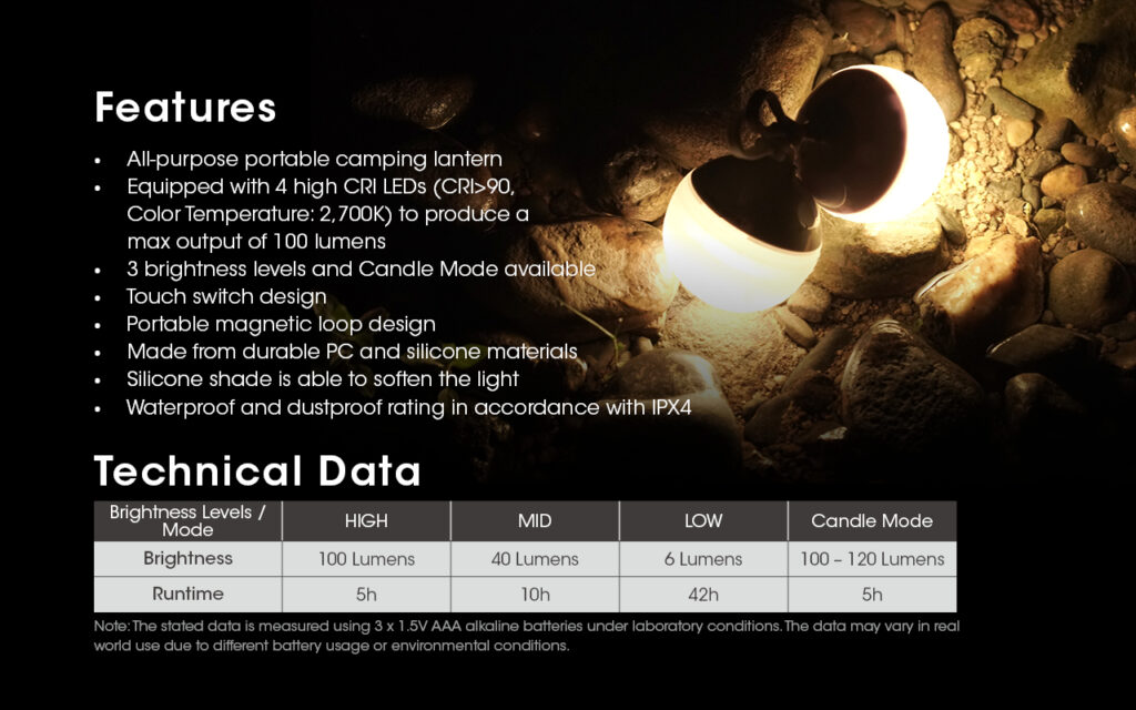 – Εξοπλισμένο με 4 LED υψηλού CRI (CRI>90, θερμοκρασία χρώματος) , για να παράγουν μέγιστη απόδοση 100 lumens