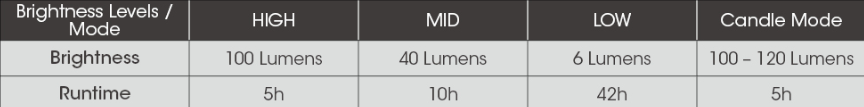 – Διαθέτει τρία (3) επίπεδα φωτεινότητας και λειτουργία κεριού