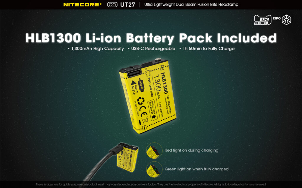 •  Περιεχόμενα συσκευασίας (Πακέτο PRO) - Φακός NITECORE UT27 - Δύο (2) επαναφορτιζόμενες μπαταρίες ιόντων λιθίου Li-ion HLB1300 με χωρητικότητα 1300mAh η κάθε μία, Καλώδιο φόρτισης USB-C - Ιμάντας κεφαλής - Ημιδιάφανος σάκος