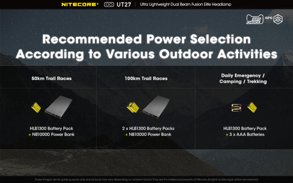 Φακός από τη Nitecore με προτεινόμενες επιλογές ενέργειας ανάλογα με τις δραστηριότητες σε εξωτερικό περιβάλλον.