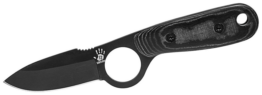 Το εντυπωσιακό μαχαίρι από την 12 Survivors™ BKE Knife™ (Bare Knife Essentials) διαθέτει AUS 8 λεπίδα από ατσάλι και ένα παχύ στρώμα Micarta στην λαβή, γεγονός που το κατατάσσει στα πιο ισχυρά του είδους του. Ειδικός σχεδιασμός με λεπίδες από ατσάλι και με την διαβαθμισμένη επιφάνειά του, προσδίδουν περισσότερη σταθερότητα και ευκρίνεια και διευκολύνουν την διαδικασία κοπής. Η επένδυση Micarta του δακτυλίου ενισχύει τη λαβή και σας προστατεύει από εκδορές και κοψίματα. Επίσης, η ειδική επένδυση αφαιρείται εύκολα, απογυμνώνοντας εντελώς το μαχαίρι, το οποίο δύναται να προσκολληθεί σε σε paracord ή σε ξύλο και να την μετατραπεί σε δόρυ. Είναι πολύ ελαφρύ και μπορεί με ευκολία να κρεμαστεί στο σακίδιο, τη ζώνη ή γύρω από τον λαιμό σας. Αποτελεί εξαιρετικό gadget για το camping αλλά και κάθε είδους outdoor δραστηριότητα.
