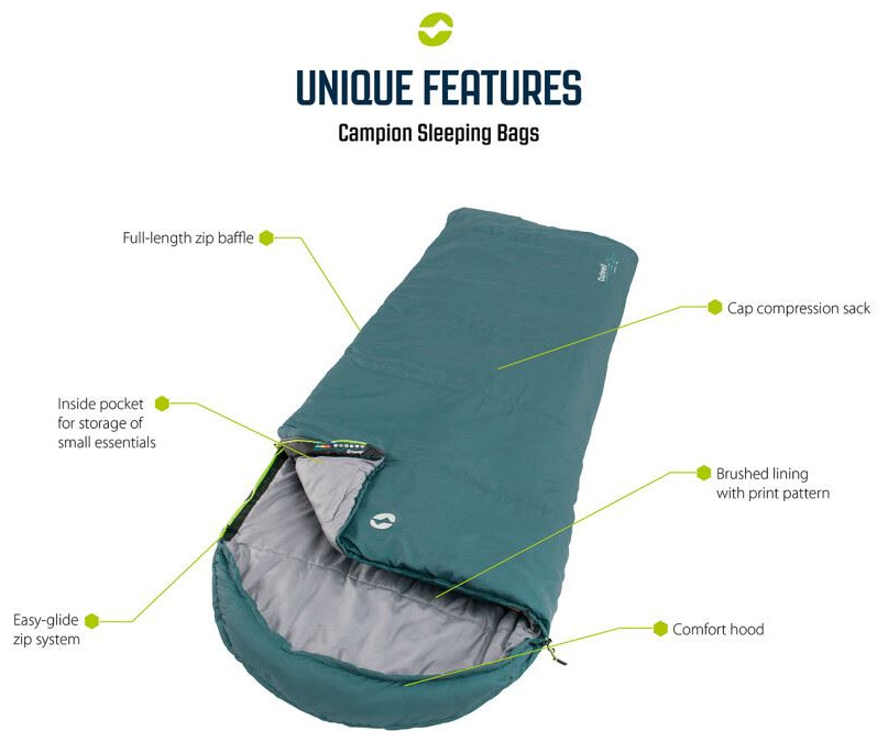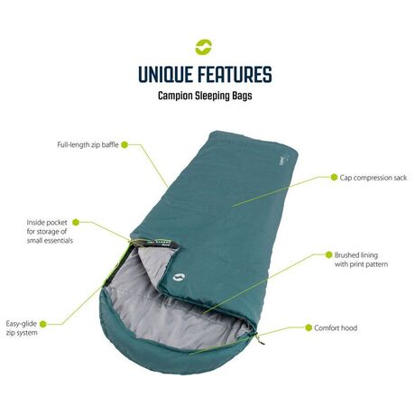 Ο μαλακός και άνετος διπλός υπνόσακος Campion Lux της Outwell αποτελεί εξαιρετική επιλογή για τους λάτρεις του κάμπινγκ! Χάρη στη διπλή στρώση επένδυσης, μπορεί να σας κρατά άνετους και ζεστούς στο κάμπινγκ και την κατασκήνωση από τους ανοιξιάτικους έως τους πρώτους φθινοπωρινούς μήνες! Κατασκευασμένος από 190T πολυεστέρα και επενδεδυμένος εσωτερικά με 1800 g Isofill, είναι φτιαγμένος για να σας εξασφαλίζει άνεση και εξαιρετικές συνθήκες ύπνου ή χαλάρωσης! Διαθέτει εσωτερική θήκη για την αποθήκευση μικροαντικειμένων, ώστε να κοιμάστε ήσυχοι τα βράδια. Το προϊόν διατίθεται με πρακτική θήκη συμπίεσης, ώστε να μπορείτε εύκολα να το αποθηκεύετε και να το μεταφέρετε μαζί σας όπου και αν το χρειάζεστε!